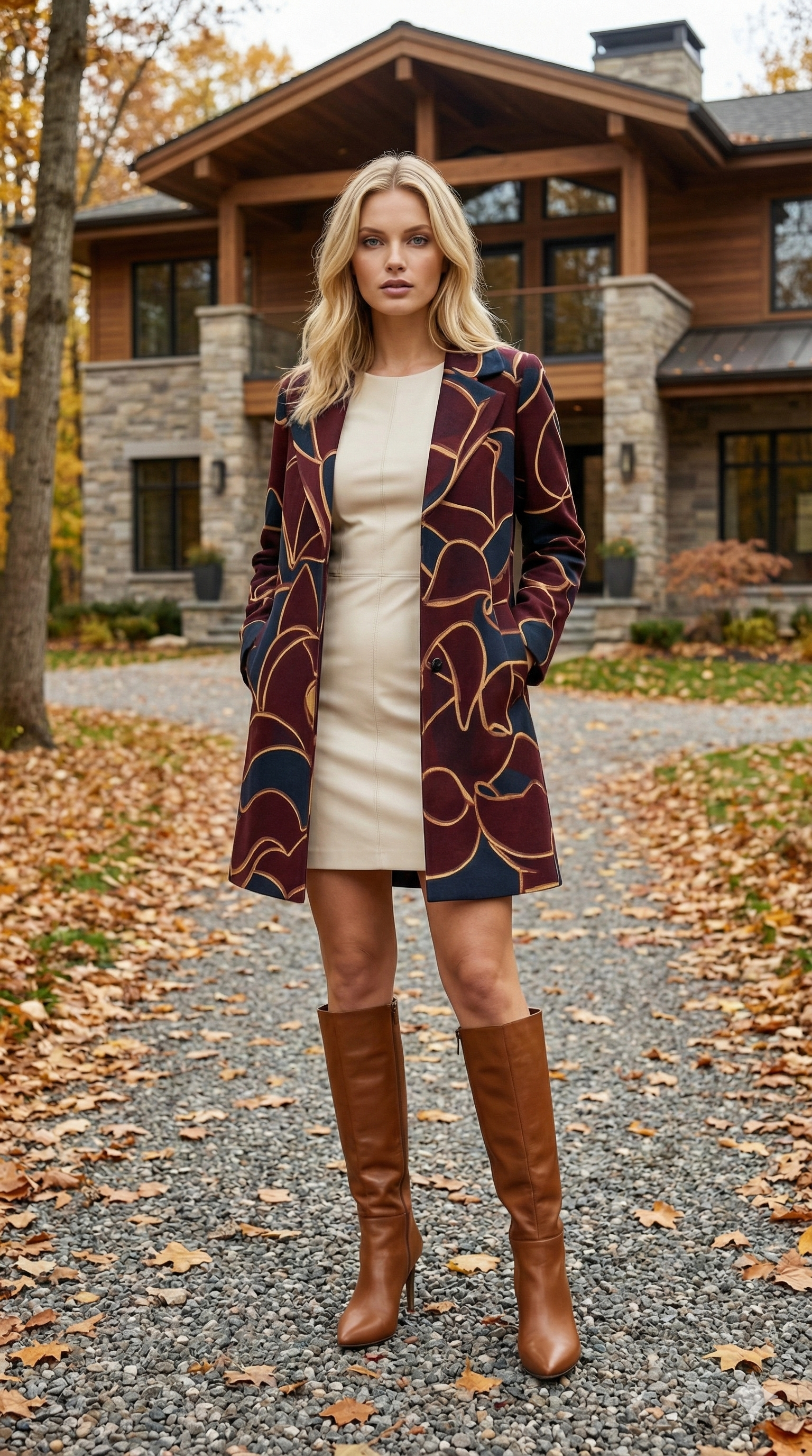 %65 süetin dokulu polyester, %30 viskon, %5 likra içeriğiyle diz boyu formda, tok ve dökümlü bir yapıya sahiptir. İtalyan kalıbı ve bordo-camel kontrast desen geçişleriyle klasik giyime modern bir dokunuş katar. Hem ofis hem şehir stiline uygun; zarif, güçlü ve şık bir dış giyim parçası.