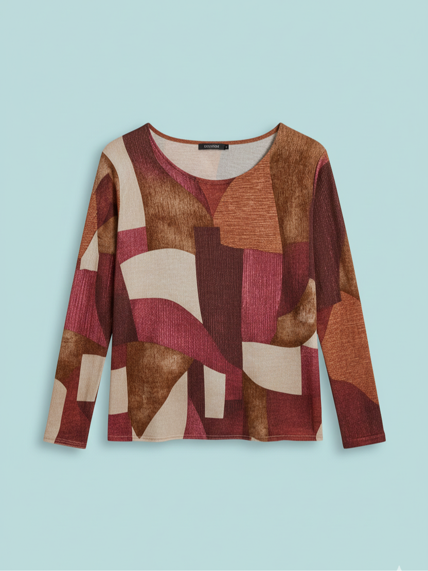 %65 viskon, %25 polyester, %10 likra içeriğiyle dökümlü, hafif esnek ve ten dostudur. İtalyan kesimiyle vücuda oturur ama sıkmaz; kübik geometrik desenleriyle modern bir stil sunar. Bordo rengin zarafetiyle hem ofiste hem şehir stilinde fark yaratmak isteyenlere özel.