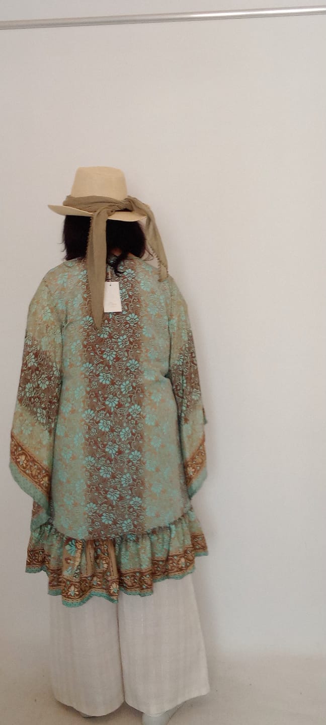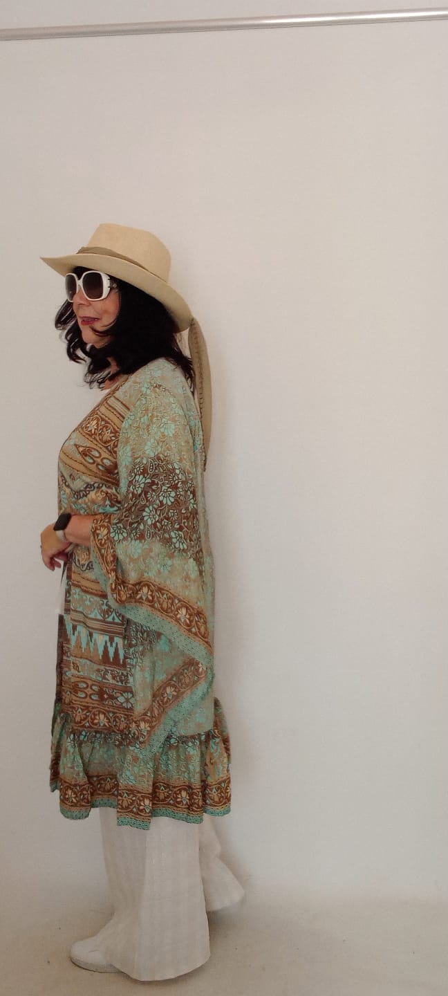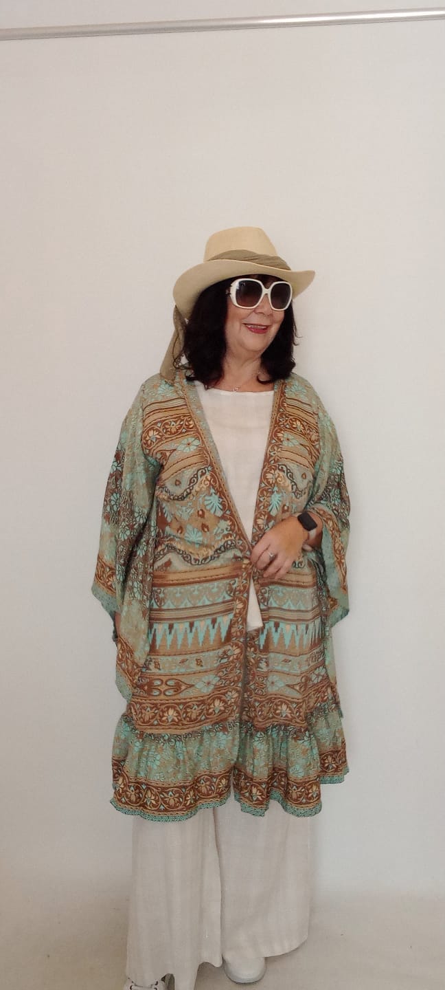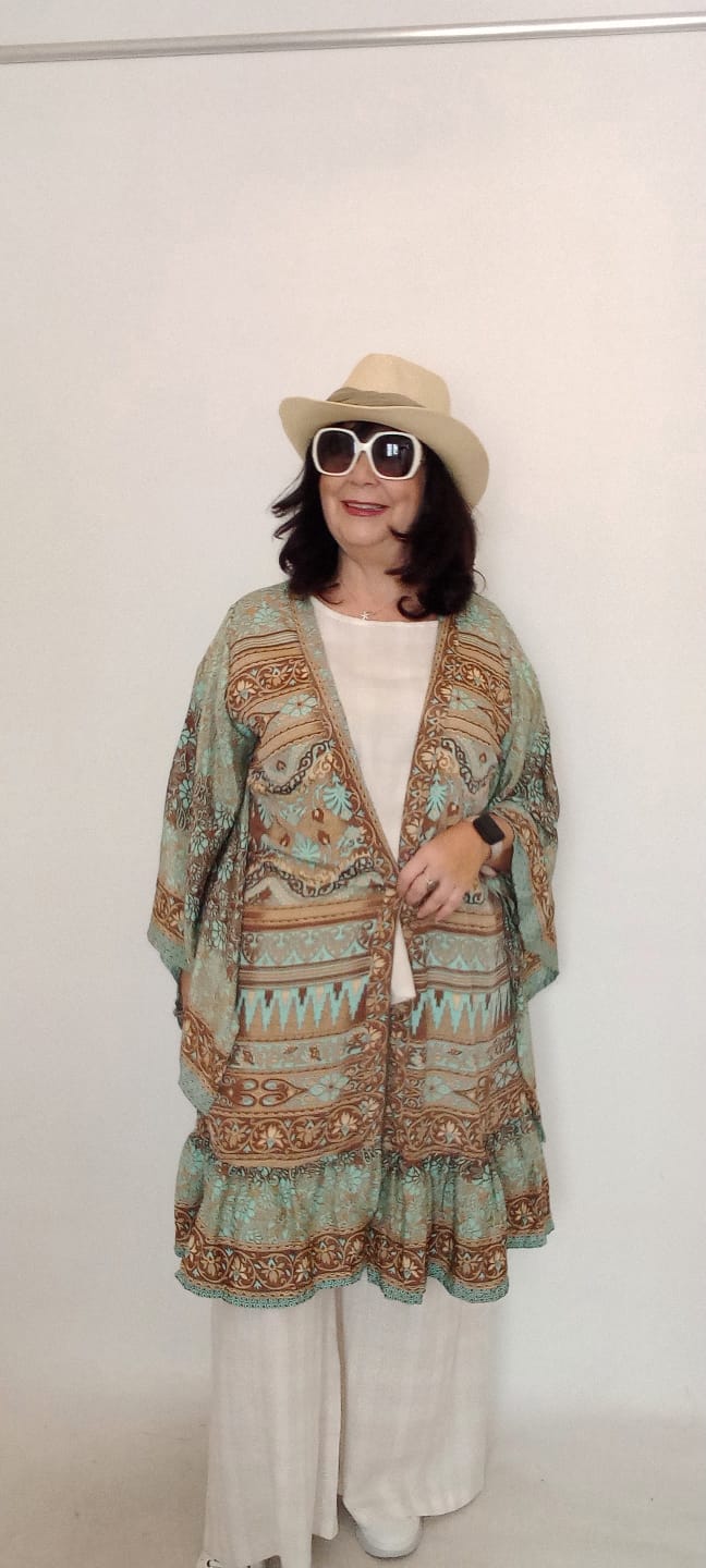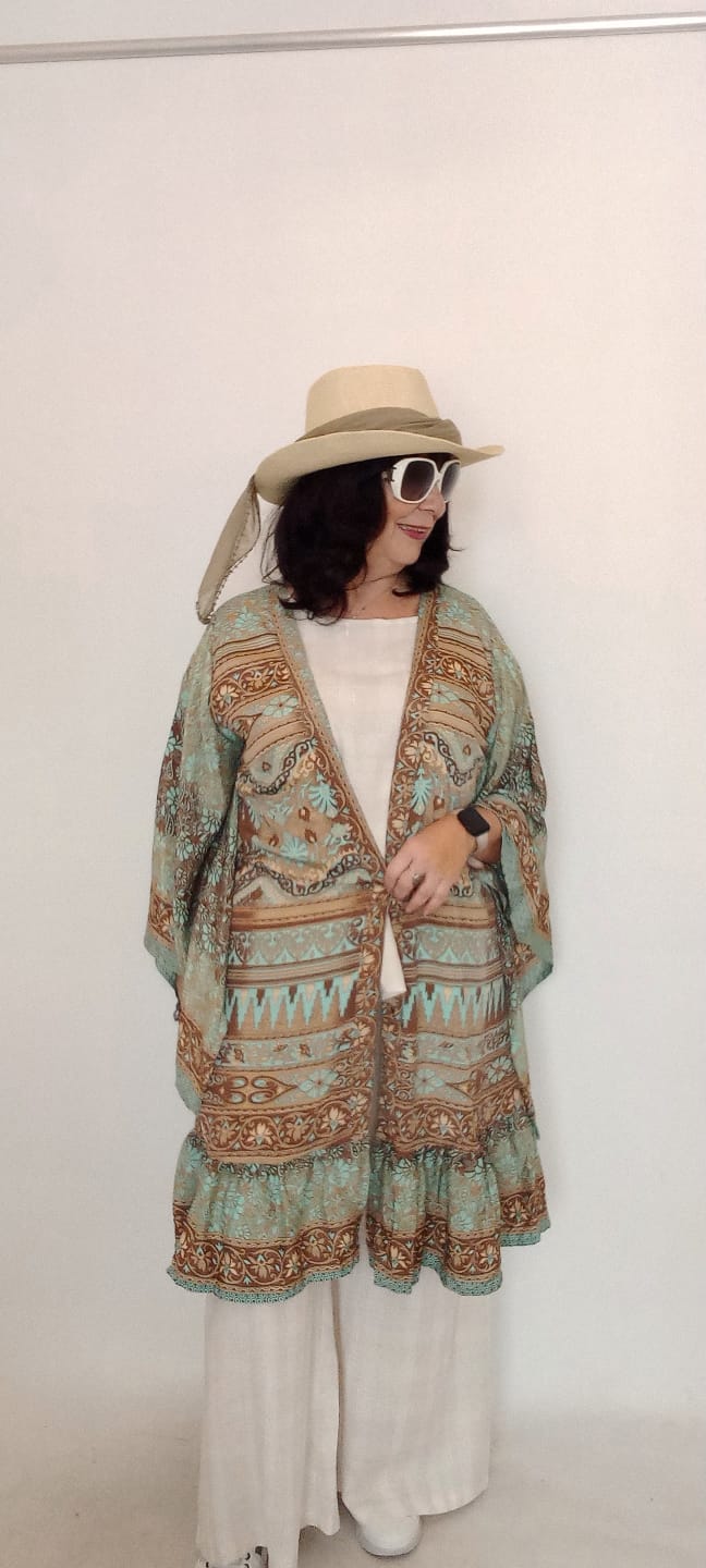 İtalyan Desenli İpek Kimono - Vizon