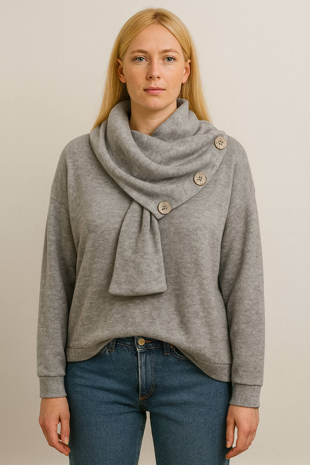 İtalyan Gri Rengi Atkılı Düğmeli Model Triko Kazak