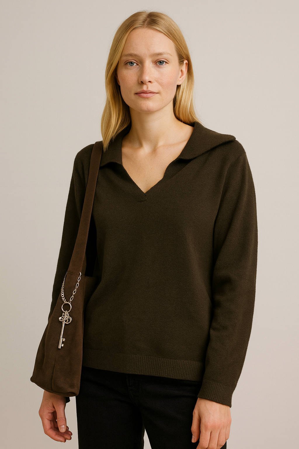 İtalyan Haki Yeşil Polo Yaka İnce Triko