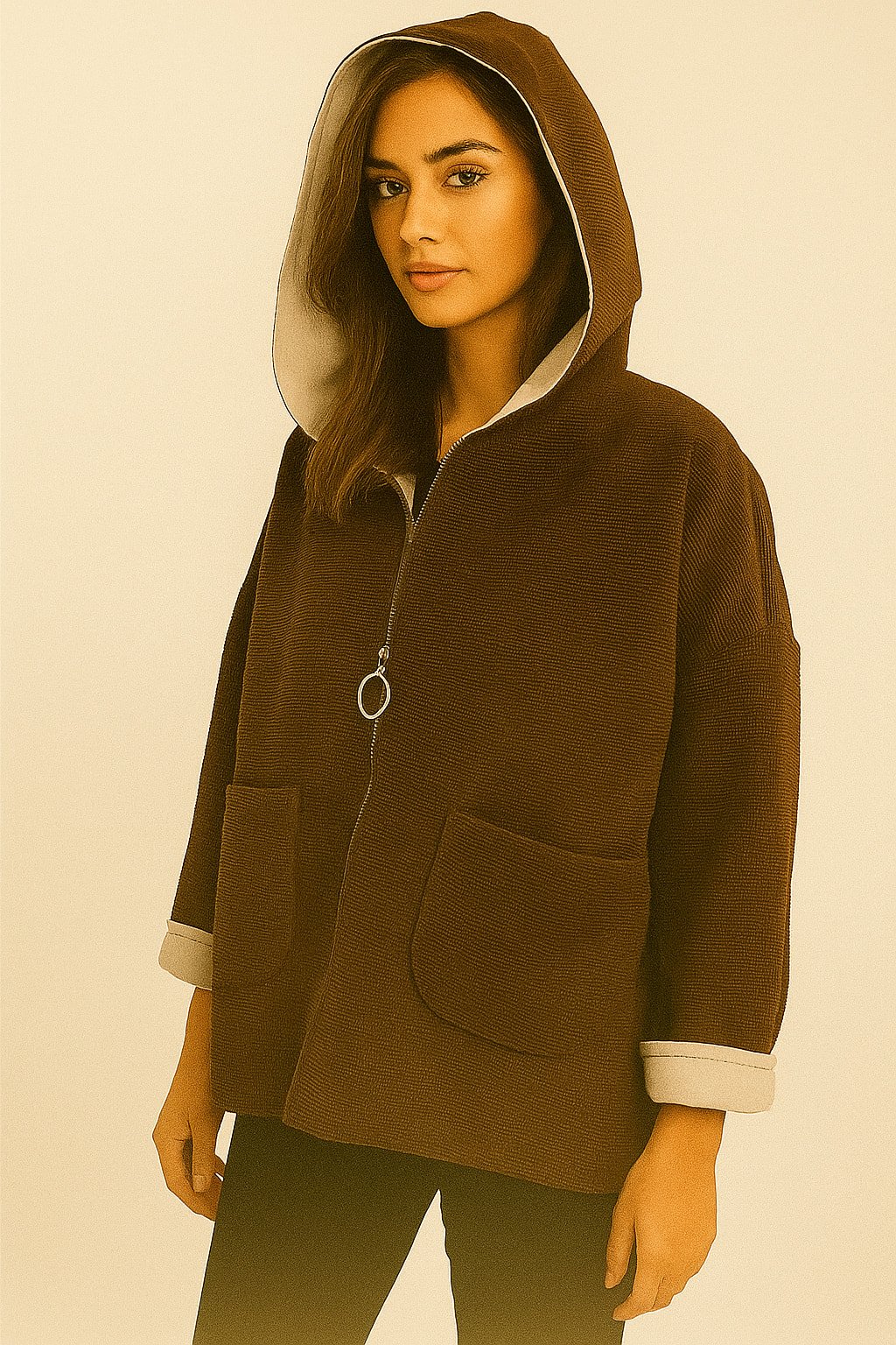 İtalyan Kahve Rengi Kapşonlu Supra Kaban