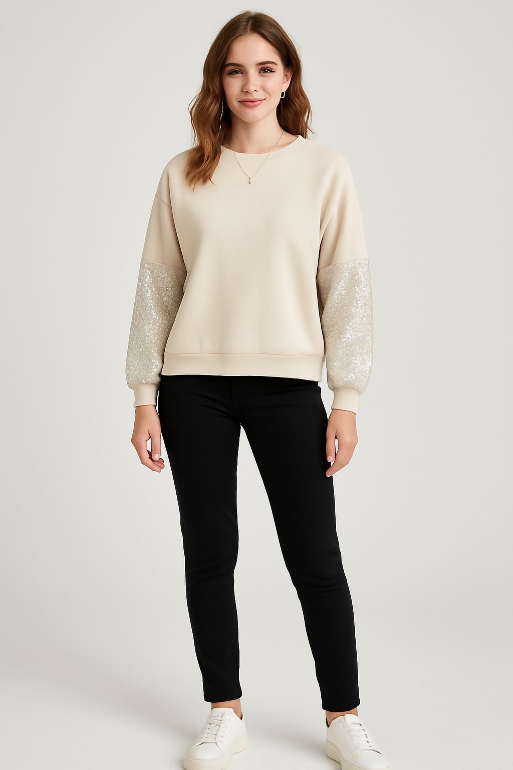 İtalyan Kolları Ufak Taşlı Kendinden Çiçekli Yuvarlak Yaka Sweet