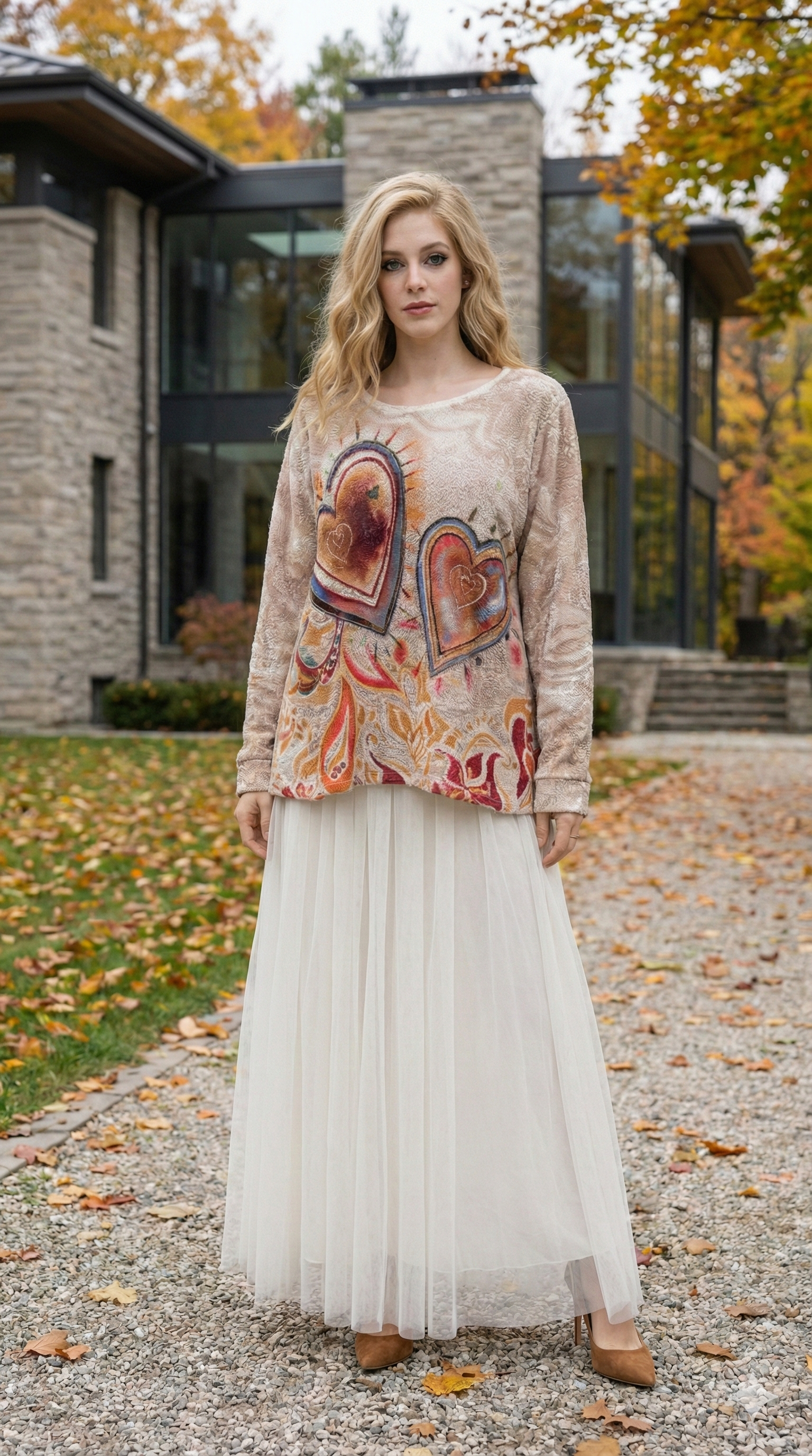 İtalyan Merserize Bej Rengi Desenli Triko Bluz