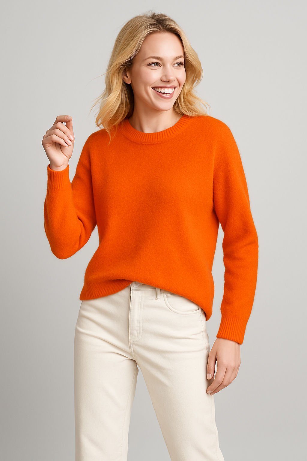 İtalyan Oranj Rengi Angora Yuvarlak Yaka Triko Kazak