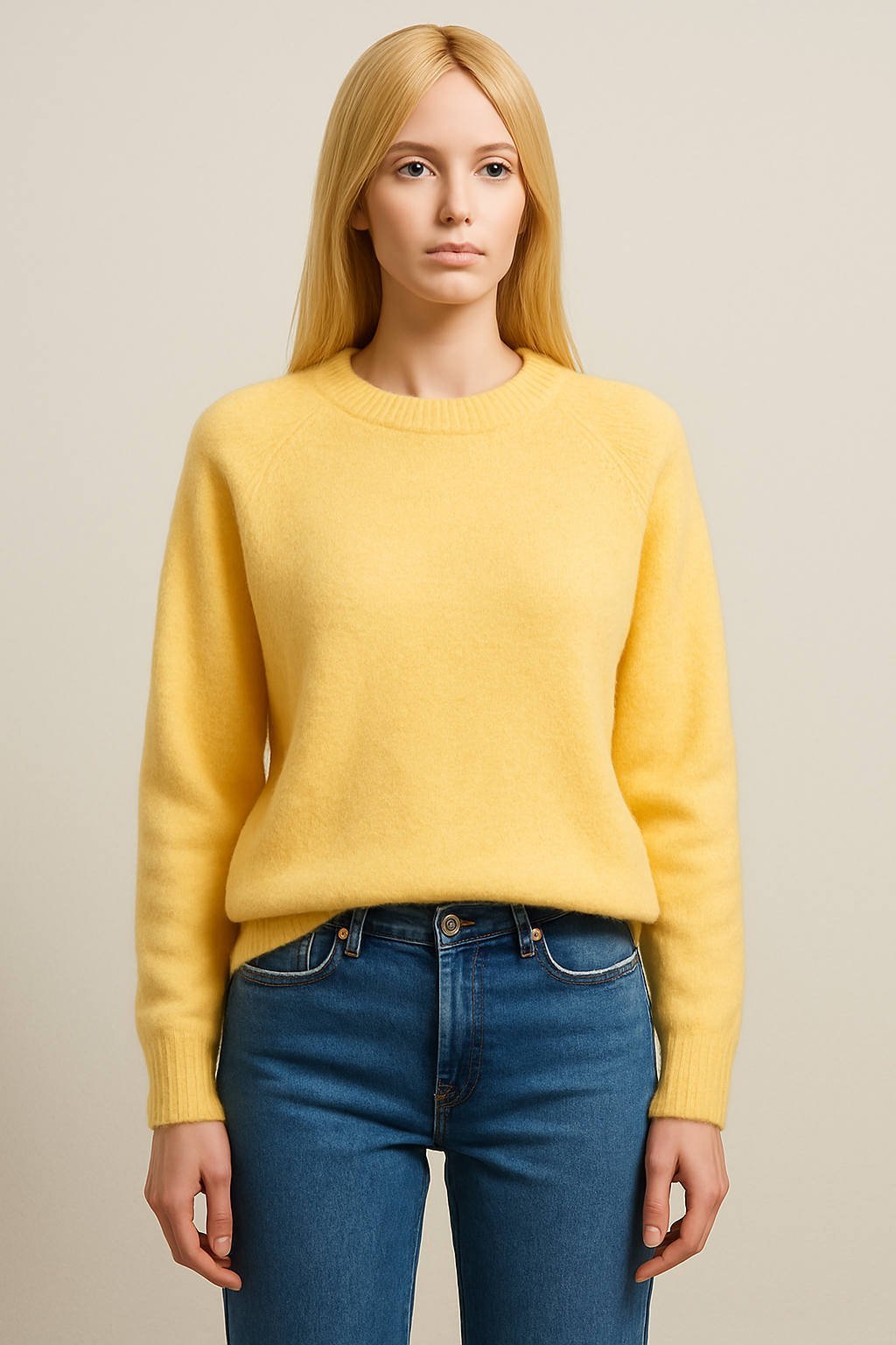 İtalyan Sarı Angora Yuvarlak Yaka Triko Kazak