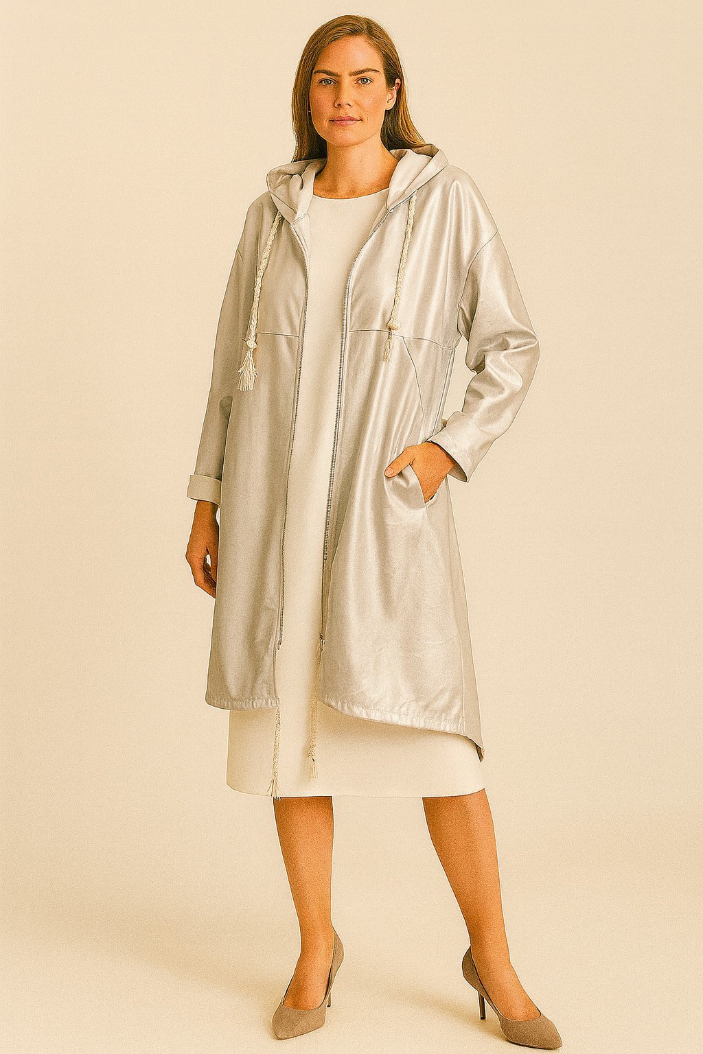İtalyan Sedef Gümüş Rengi Kapşonlu Trençkot