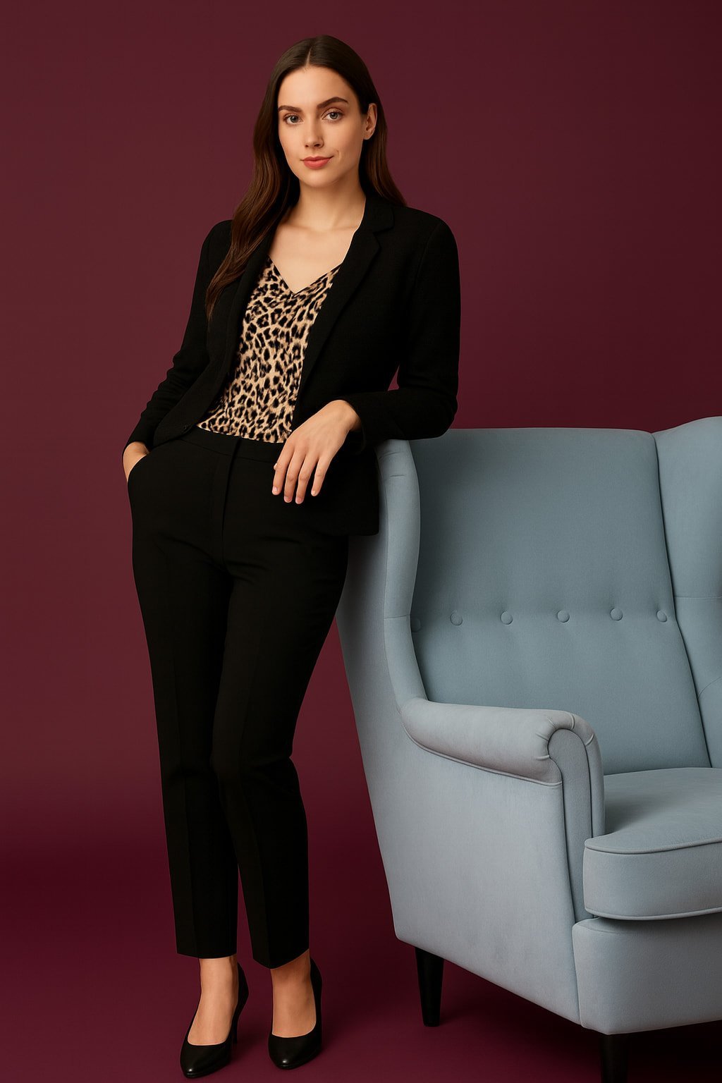 İtalyan Siyah Oturan Tek Dügmeli Örme Ceket