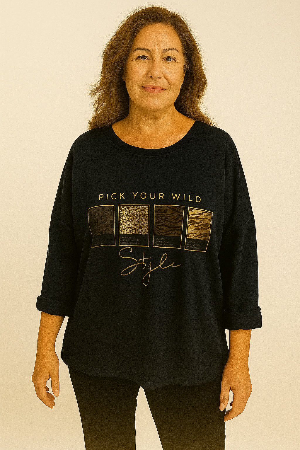 İtalyan Siyah Yuvarlak Yaka Dore Yazılı Sweet