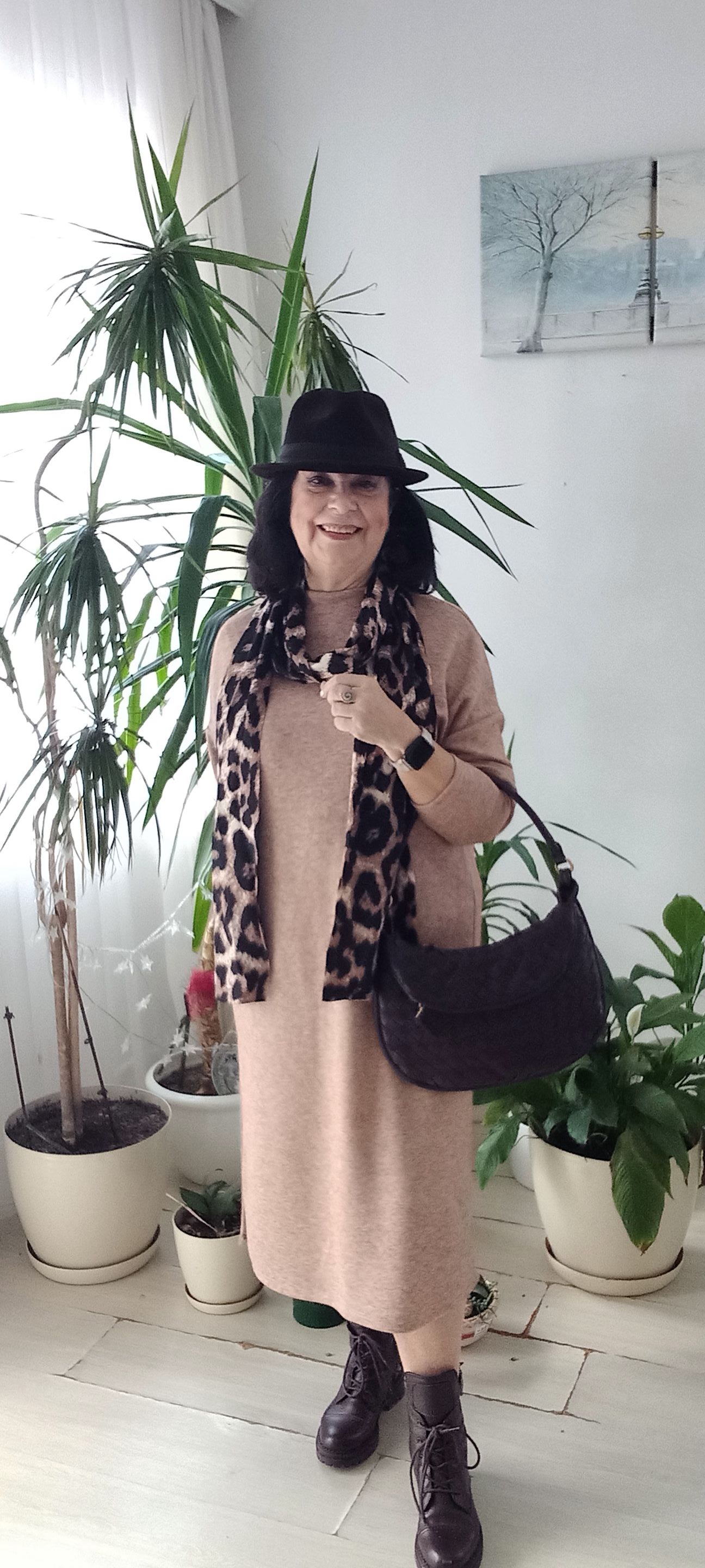 İtalyan Yuvarlak Yaka Düz Salaş Kemerli Triko Elbise