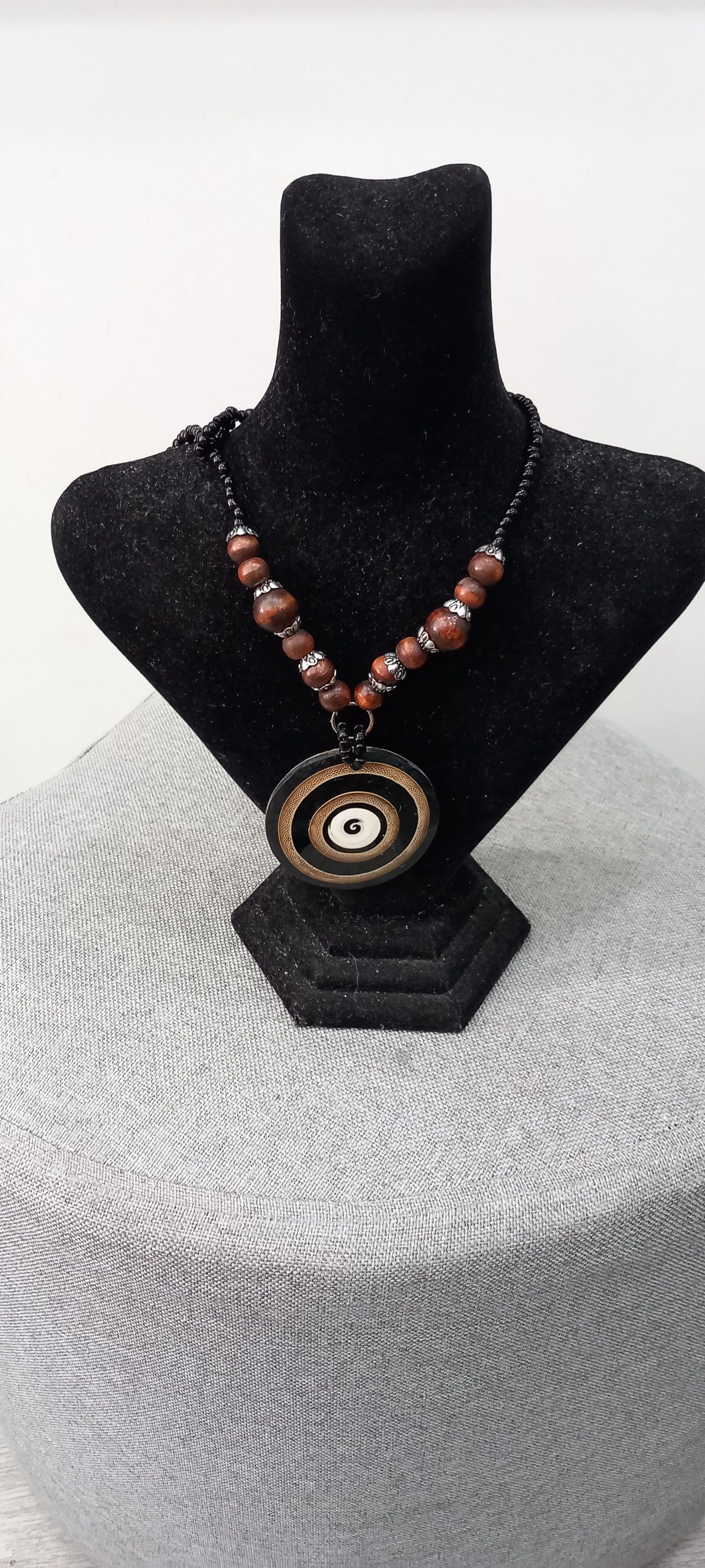 Kahve Daire Şeklinde Tasarım Tahta Kolye