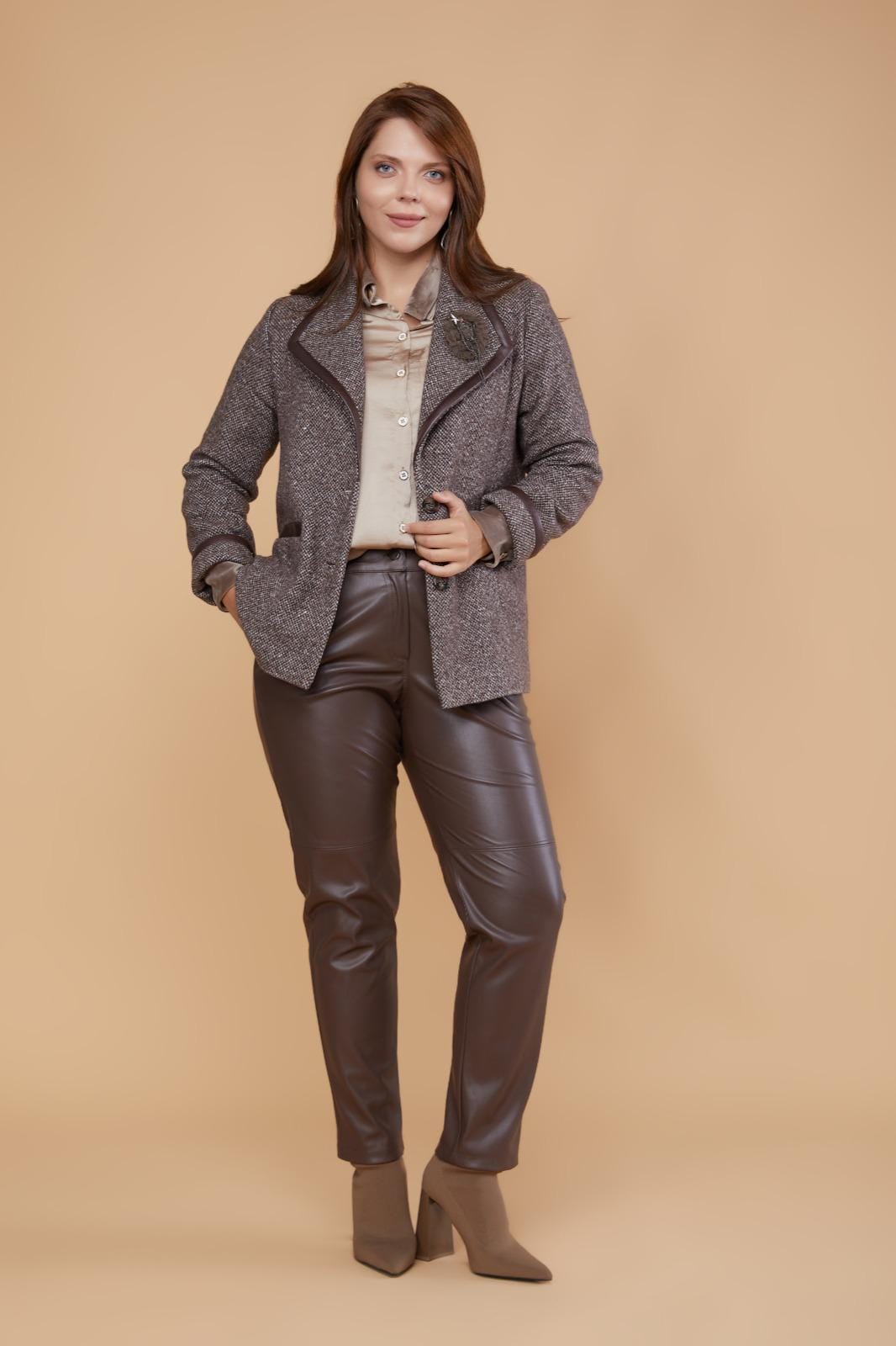 Kahveli Bej li Tüwit CeketBÜYÜK
