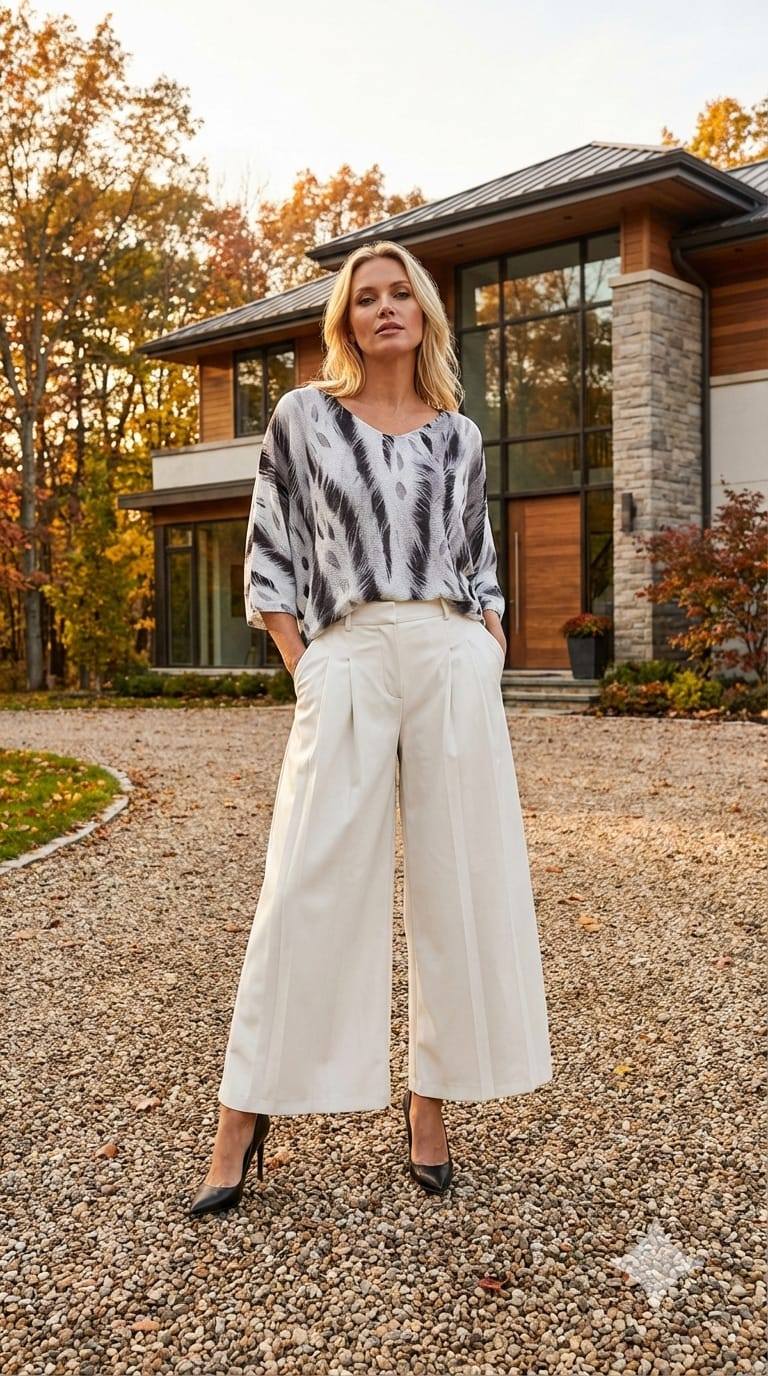 Kemik Gri Desenli İtalyan Merserize Triko Bluz