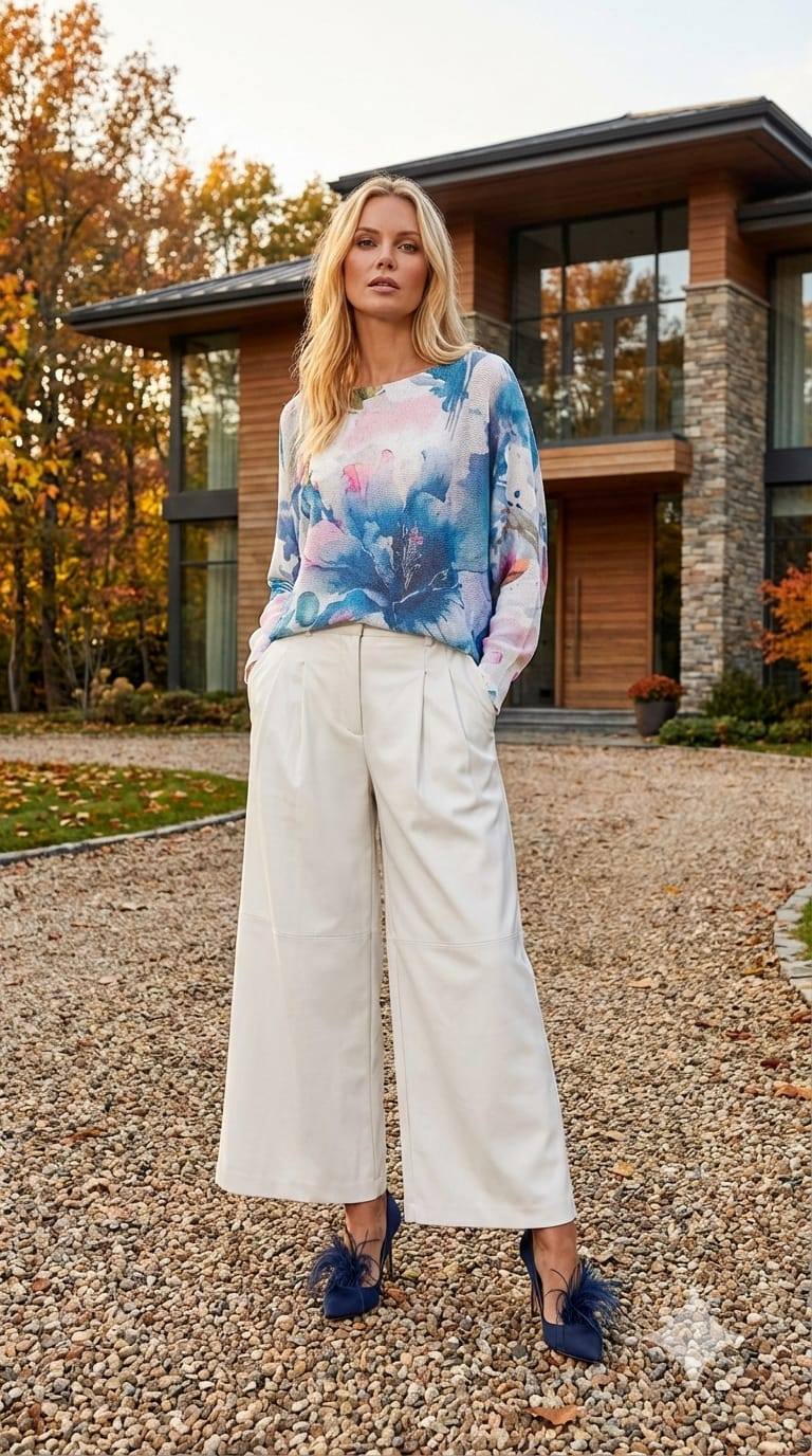 Kemik Mavi Desenli İtalyan Merserize Triko Bluz