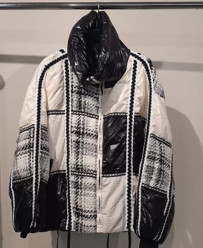 %90 kaz tüyü, %10 kaz tüyü destekleyici dolgu ile maksimum ısı yalıtımı sağlar. İtalyan kesimiyle modern bir siluet sunarken, kemik üzerine siyah kareli deseniyle klasik ve şehirli bir stil yaratır. Soğuk havalarda ultra hafifliğiyle fark yaratır. Hem şık hem fonksiyonel.