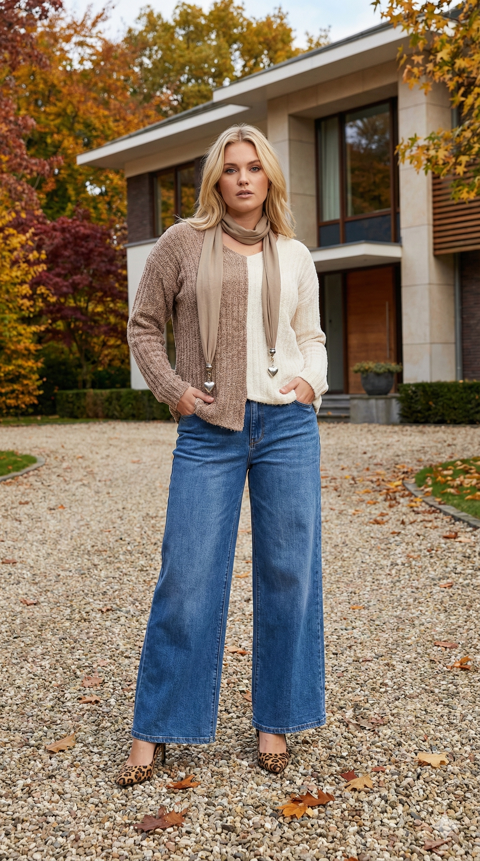 Kemik Vizon İki Renkli Tüylü Triko