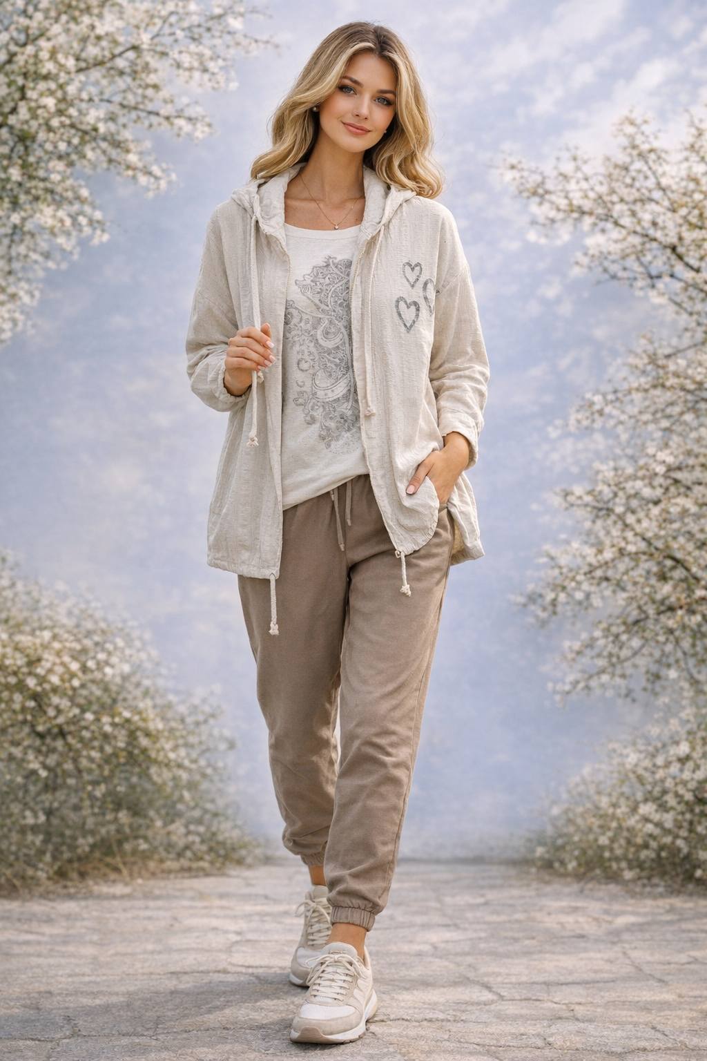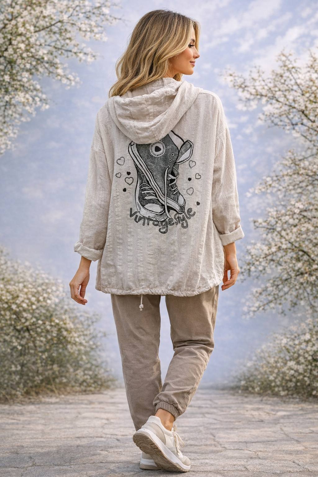 Keten Kapşonlu Arkası Ayakkabı Figürü Olan Ceket