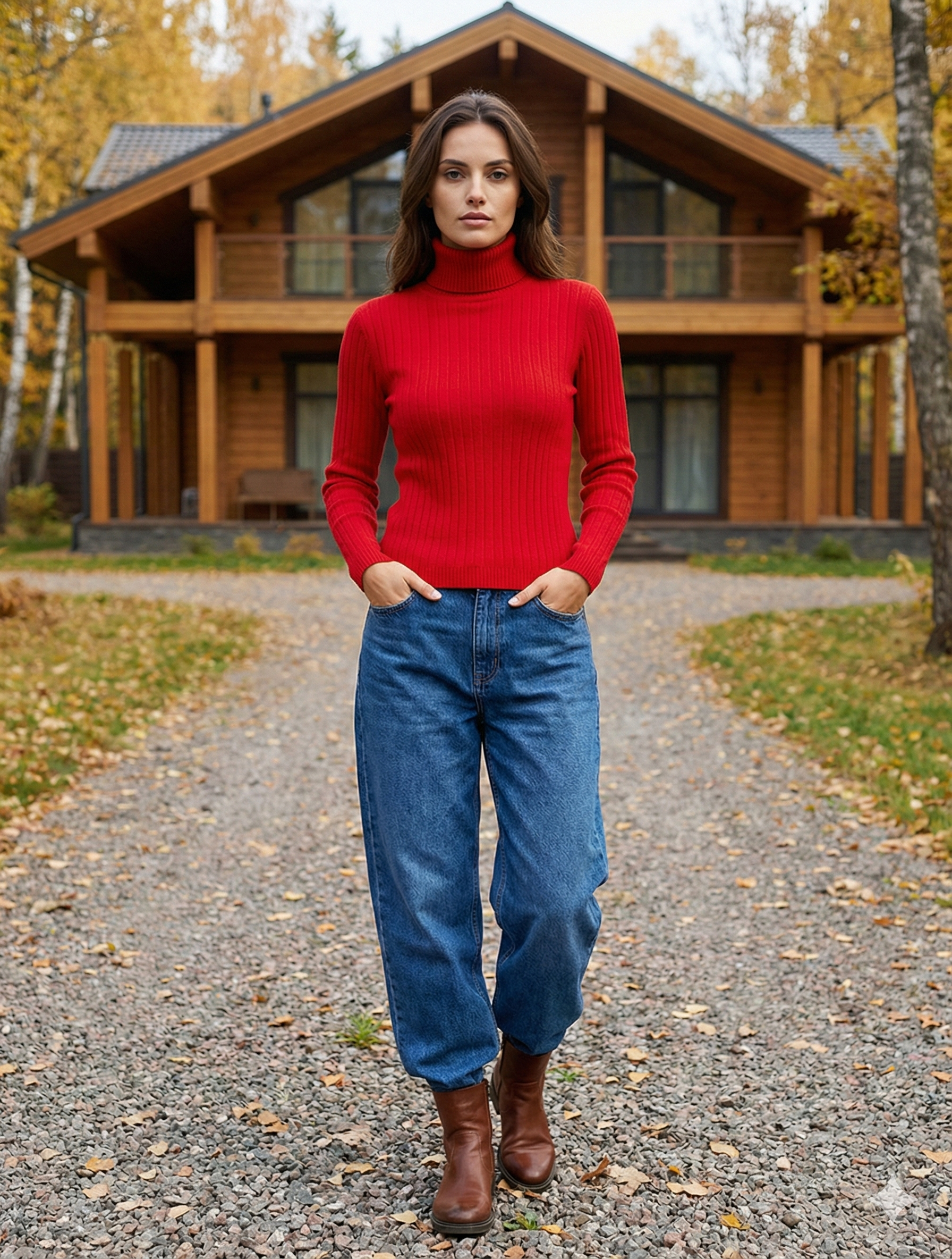 Kırmızı Dik Yaka Likralı Triko Kazak