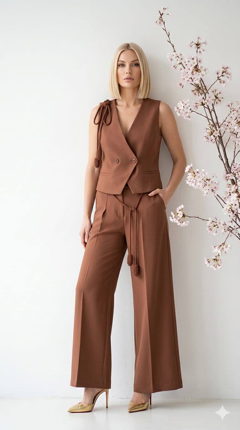 Kızıl Kahve Kolsuz Bluz Veya Yelek
