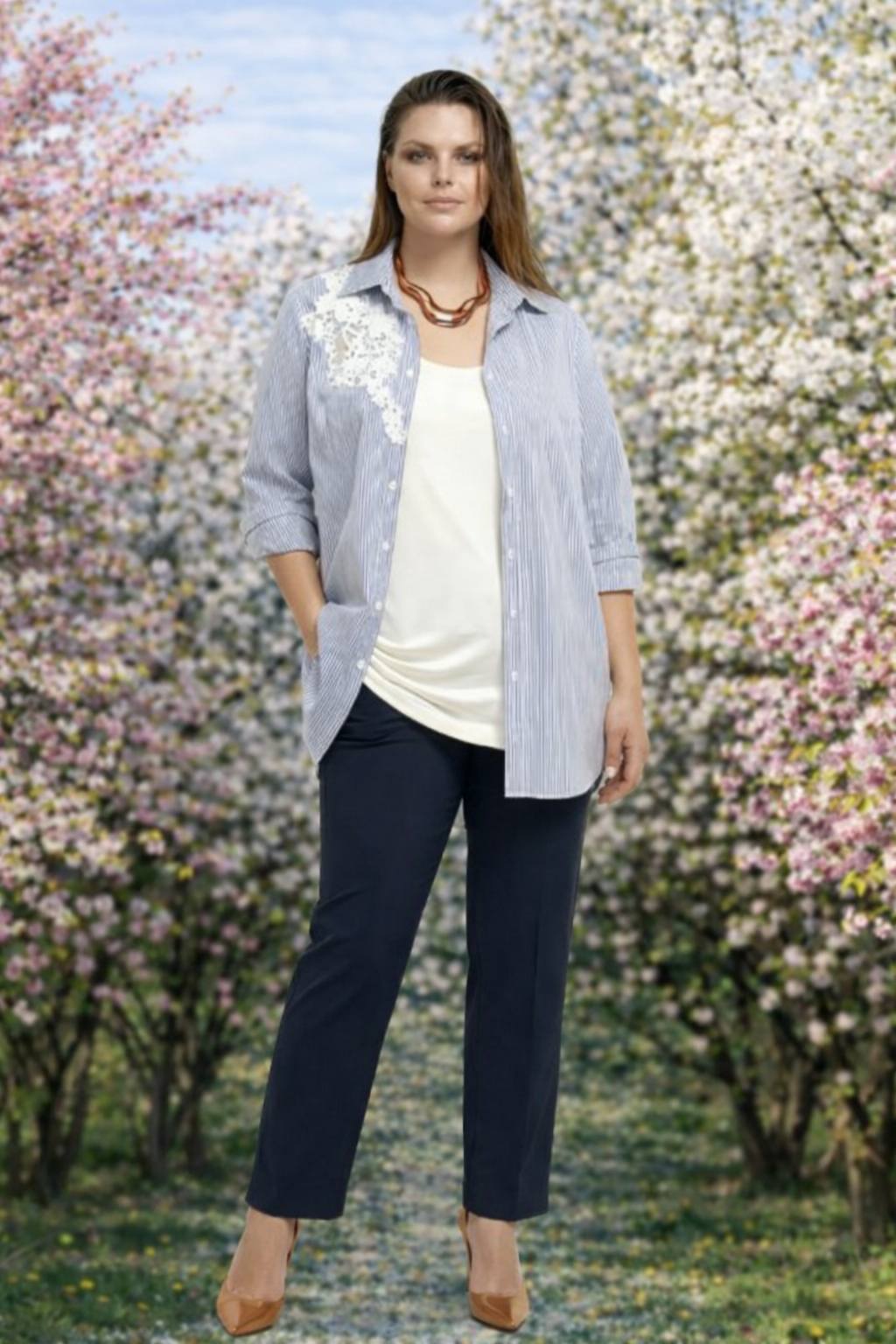 Mavi Çizgili Çiçek Fistolu Uzun Poplin Gömlek