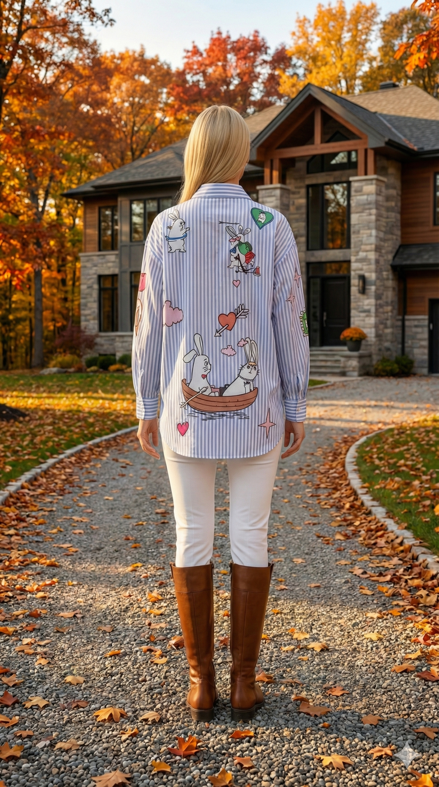 Mavi Çizgili Keten İtalyan Üstünde Aplikeleri olan Gömlek Ceket