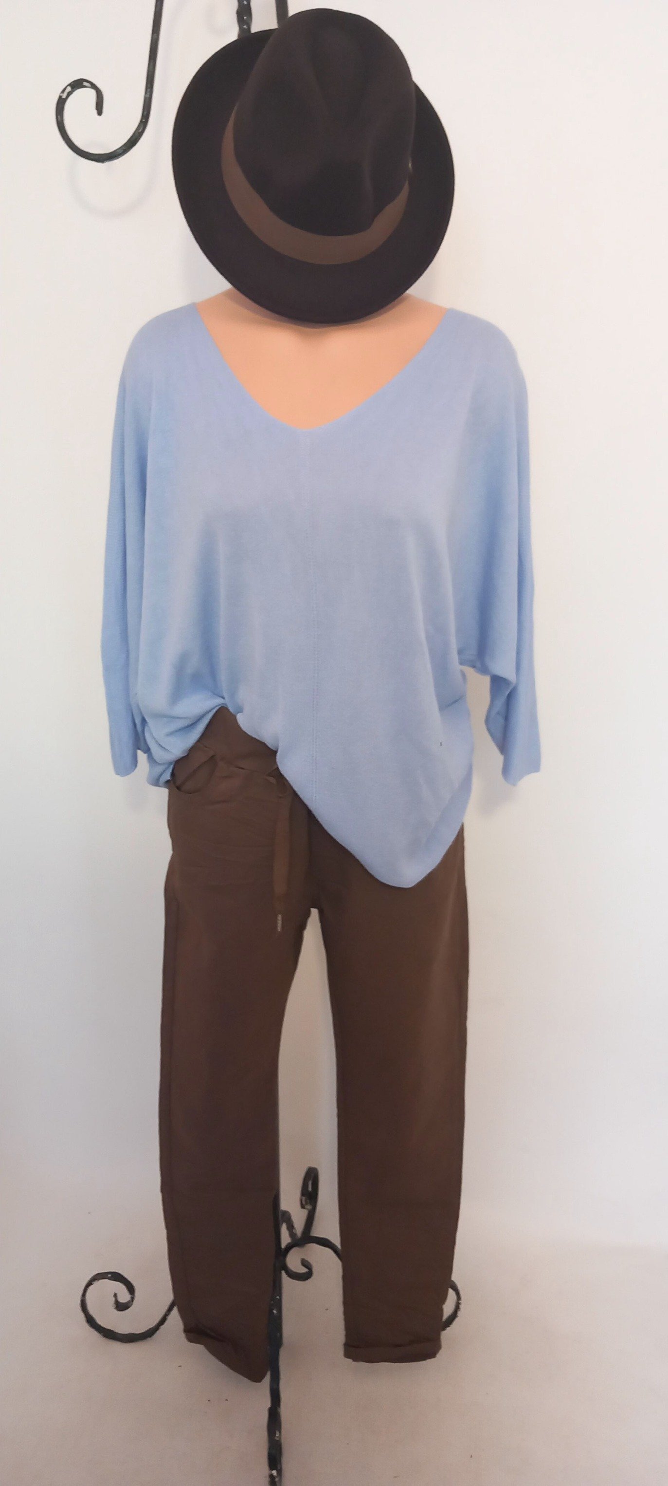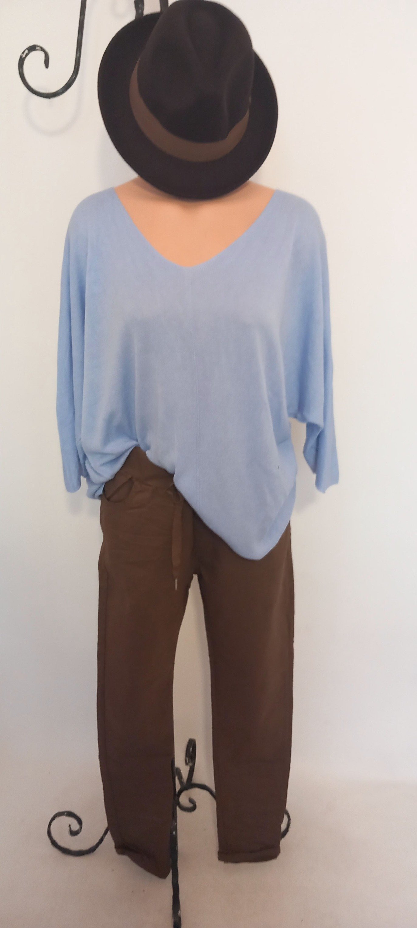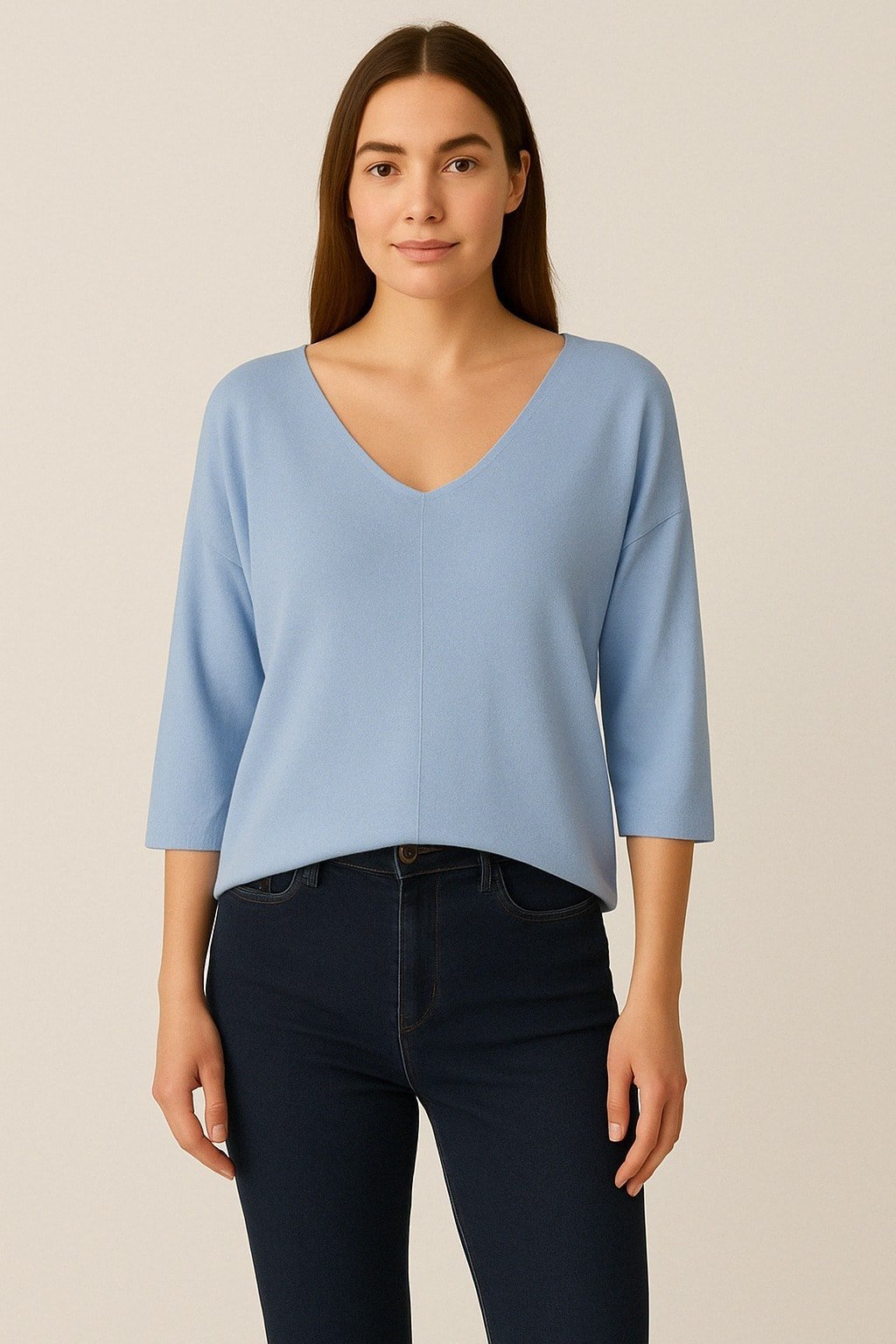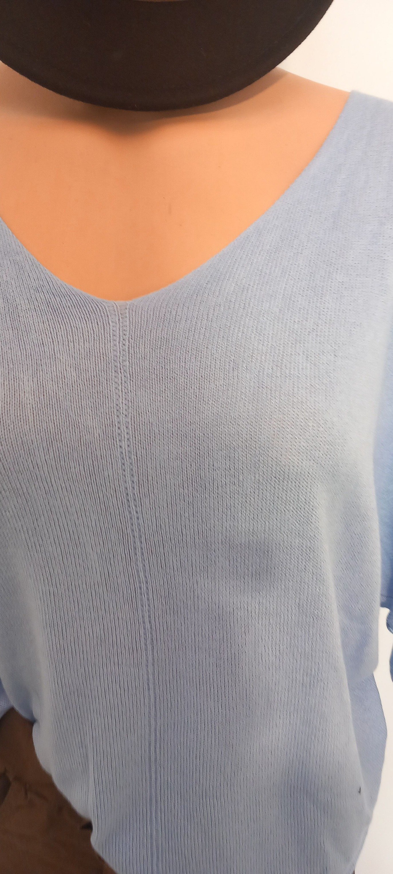 Mavi İtalyan V Yaka Salaş Cotton Triko