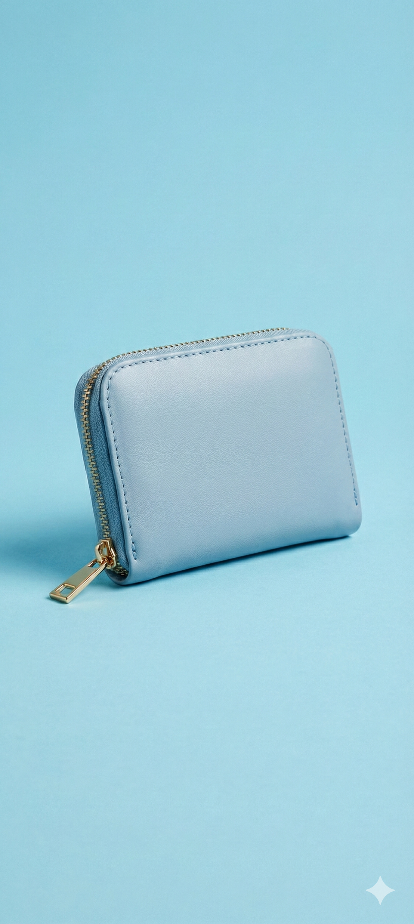 %85 suni deri, %15 pamuk astarlıdır. Minimal boyutu sayesinde el çantalarına kolayca sığar; kart, nakit ve anahtar taşıma için pratik kullanım sunar. Canlı mavi tonu ve sade tasarımıyla şıklığı işlevsellikle buluşturur.