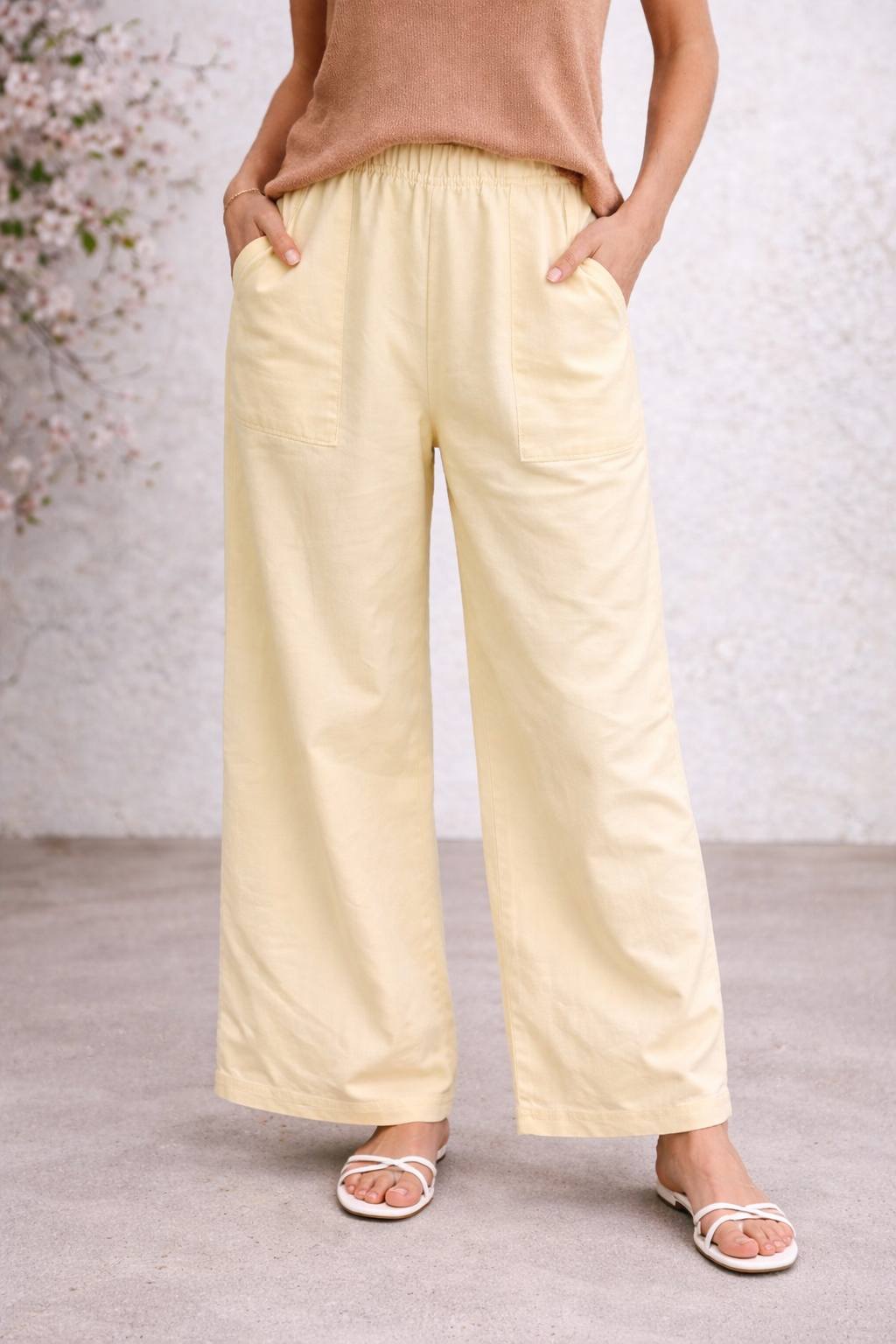 Sarı Bol Şalvar Modeli Beli Lastikli Cotton Pantalon