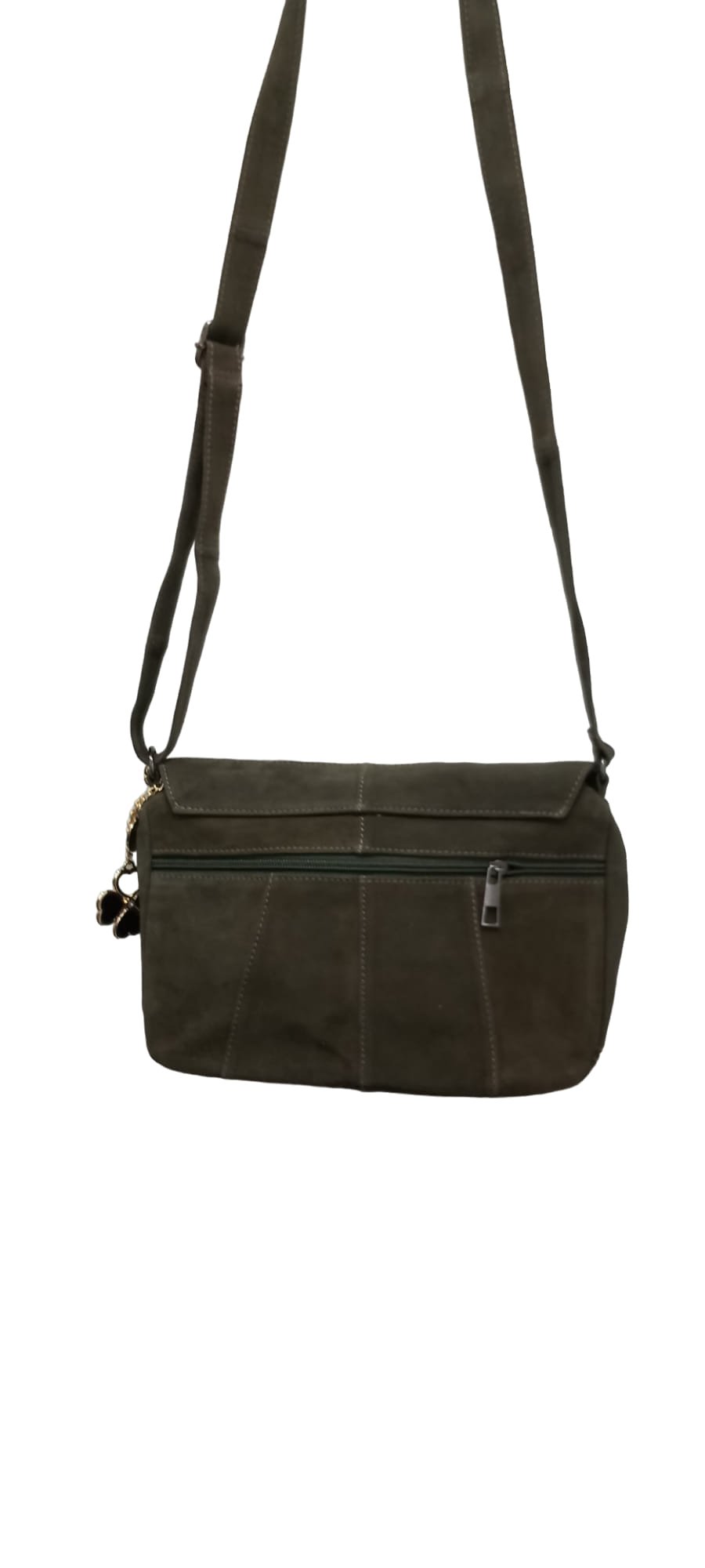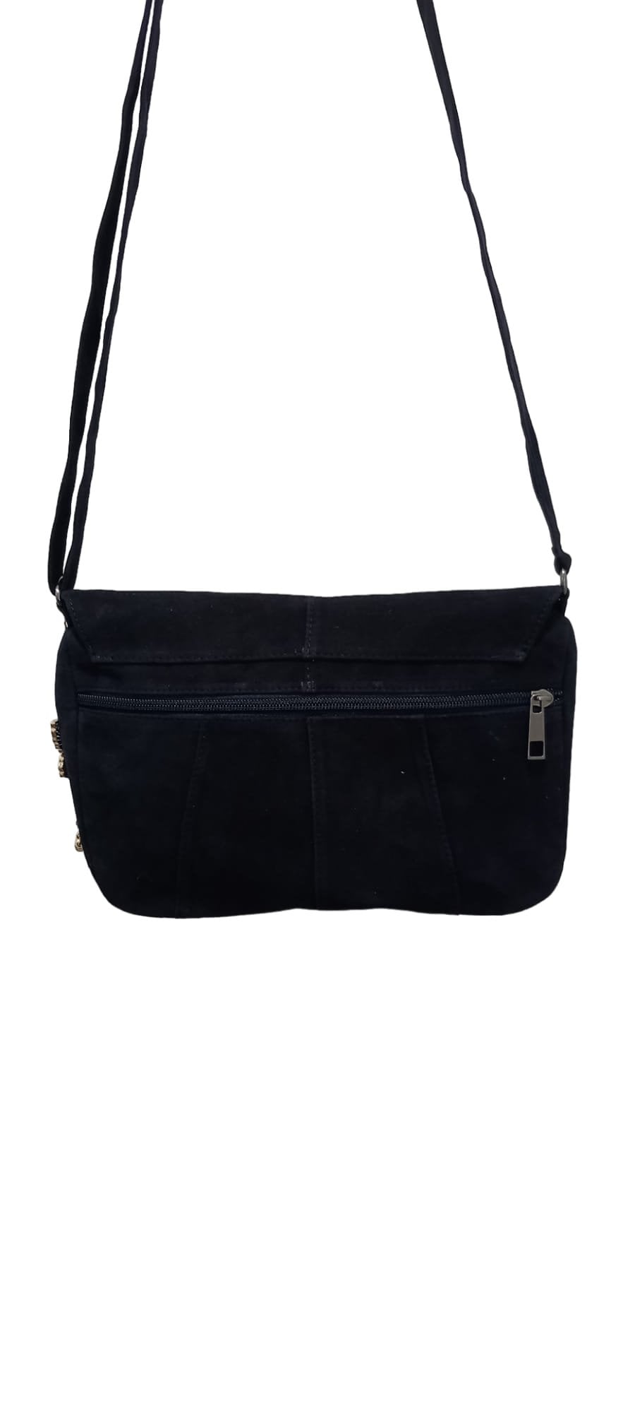 Siyah Hakiki Suet Postacı Modeli Kapaklı Arkasınde Fermuarlı Gözü Olan Çanta en 25cm yükseklik 18 cm körük 5 cm