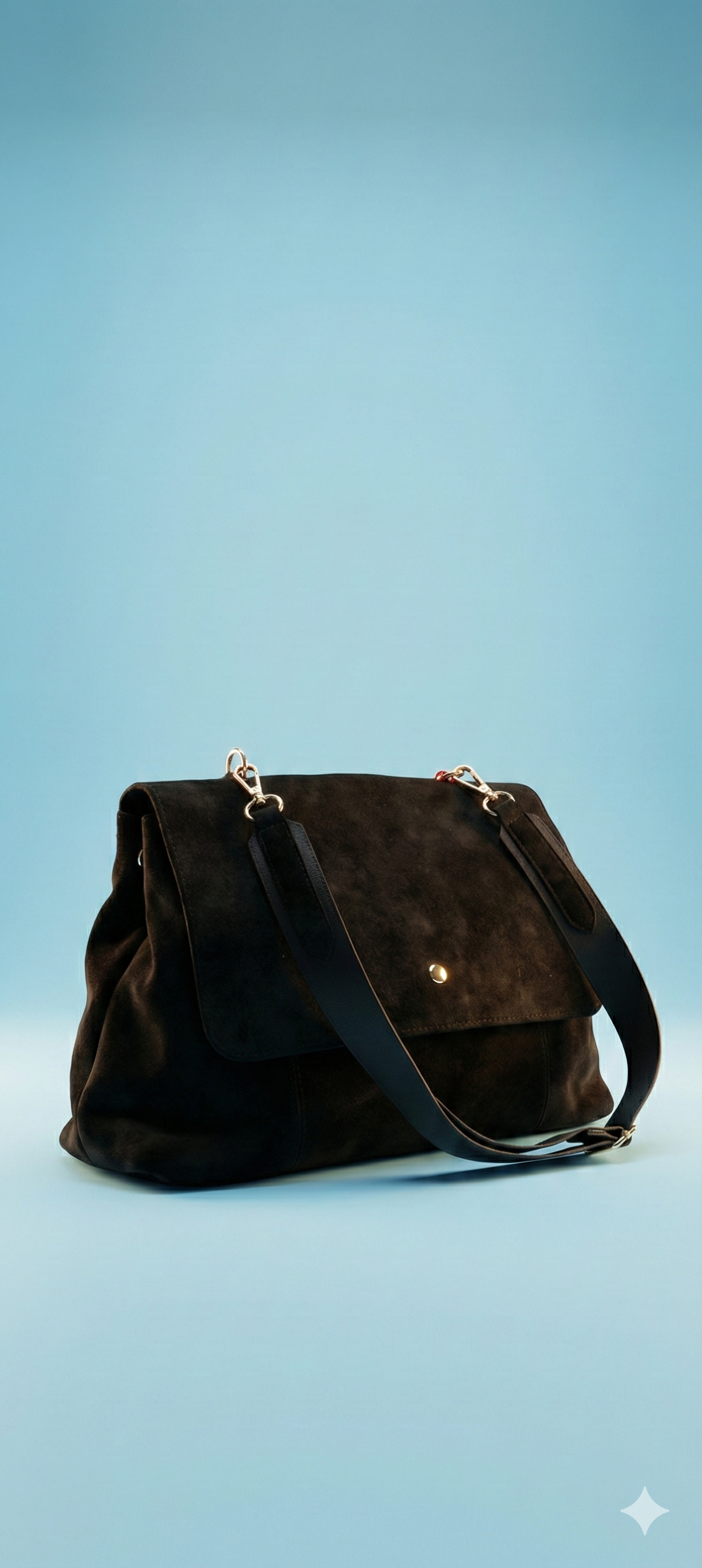 %100 hakiki süet deri gövde ve sap yapısıyla doğal dokulu, premium bir kullanım sunar. Kapaklı tasarımı hem güvenli hem şık, elde taşımaya uygun sade sap detayıyla zamansız bir duruş sergiler. Günlük stilinize sofistike bir tamamlayıcı arıyorsanız doğru parça bu. 26 en