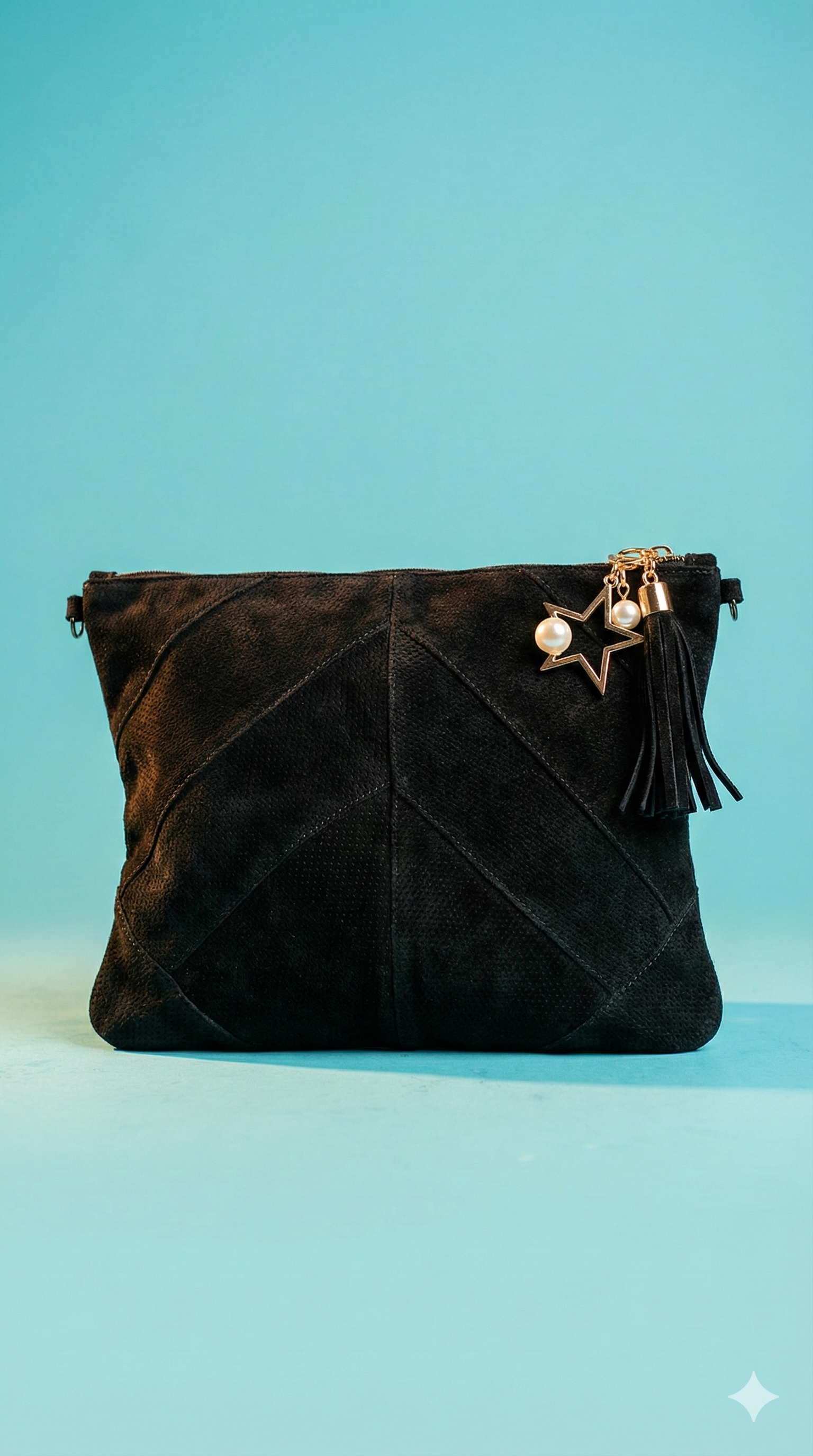 Siyah İki Tarafı Suet Dikişli Portföy en 33 cn yukseklik 25
