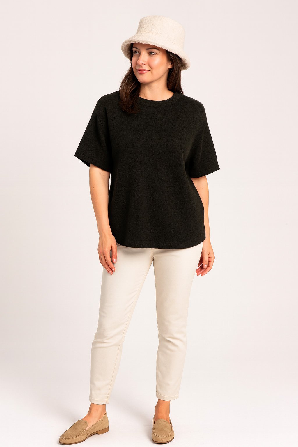 Siyah Kısa Kol Angora İtalyan Triko Kazak