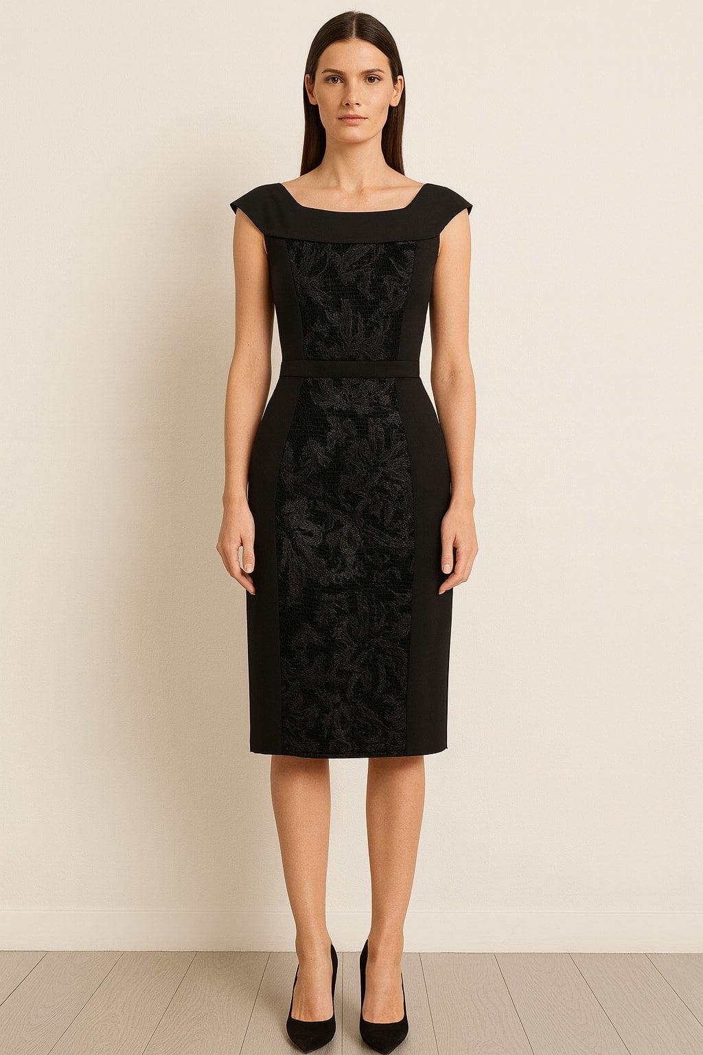 Siyah Kolsuz Kayık Yaka Küpür lü Elbise
