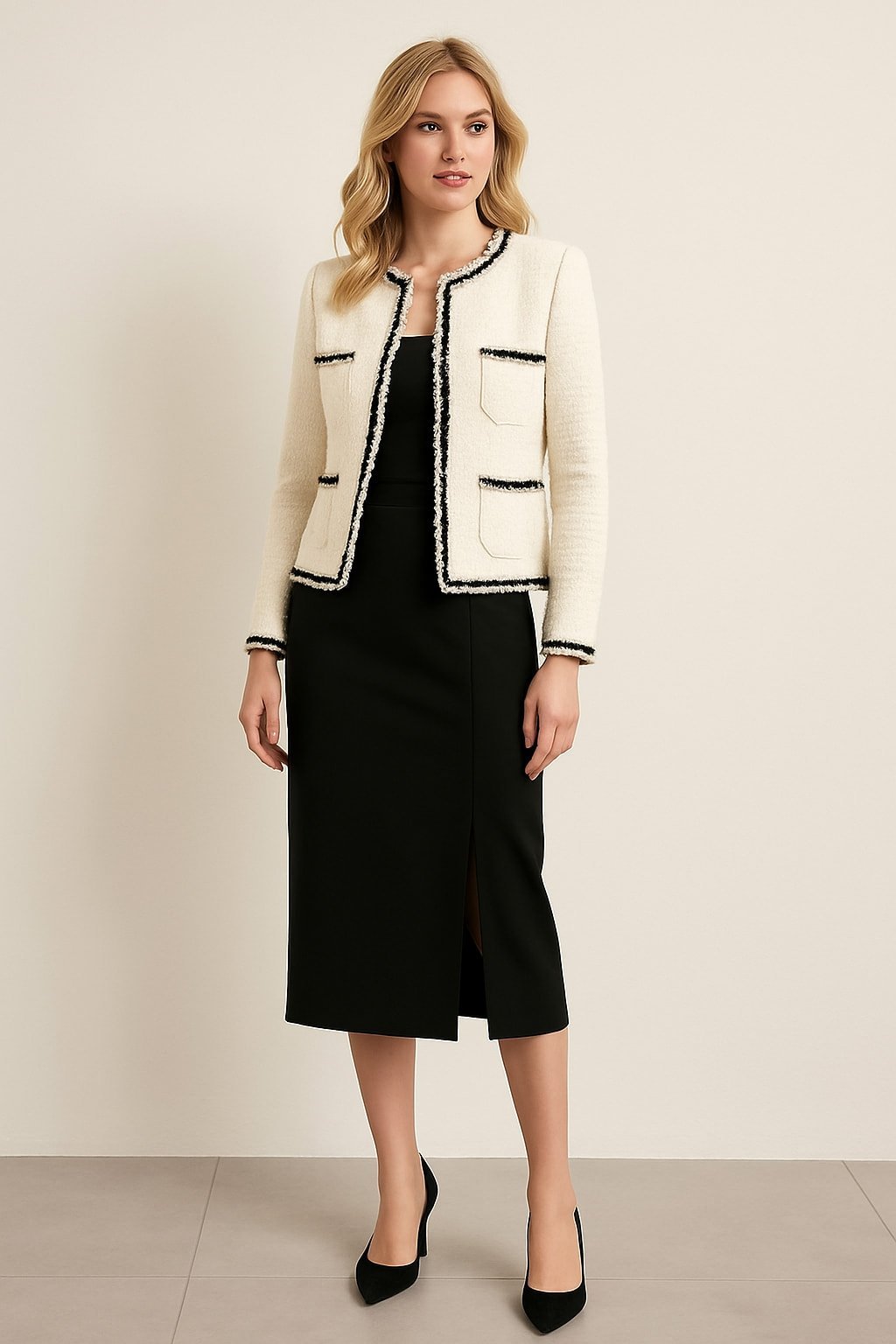 Siyah Likralı Kumaş Yırtmaçlı Etek