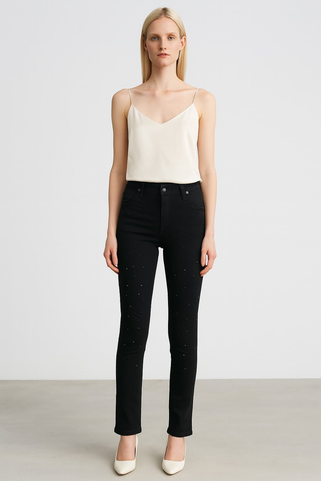 Siyah Taşlı Boru Paça Streç Pantalon