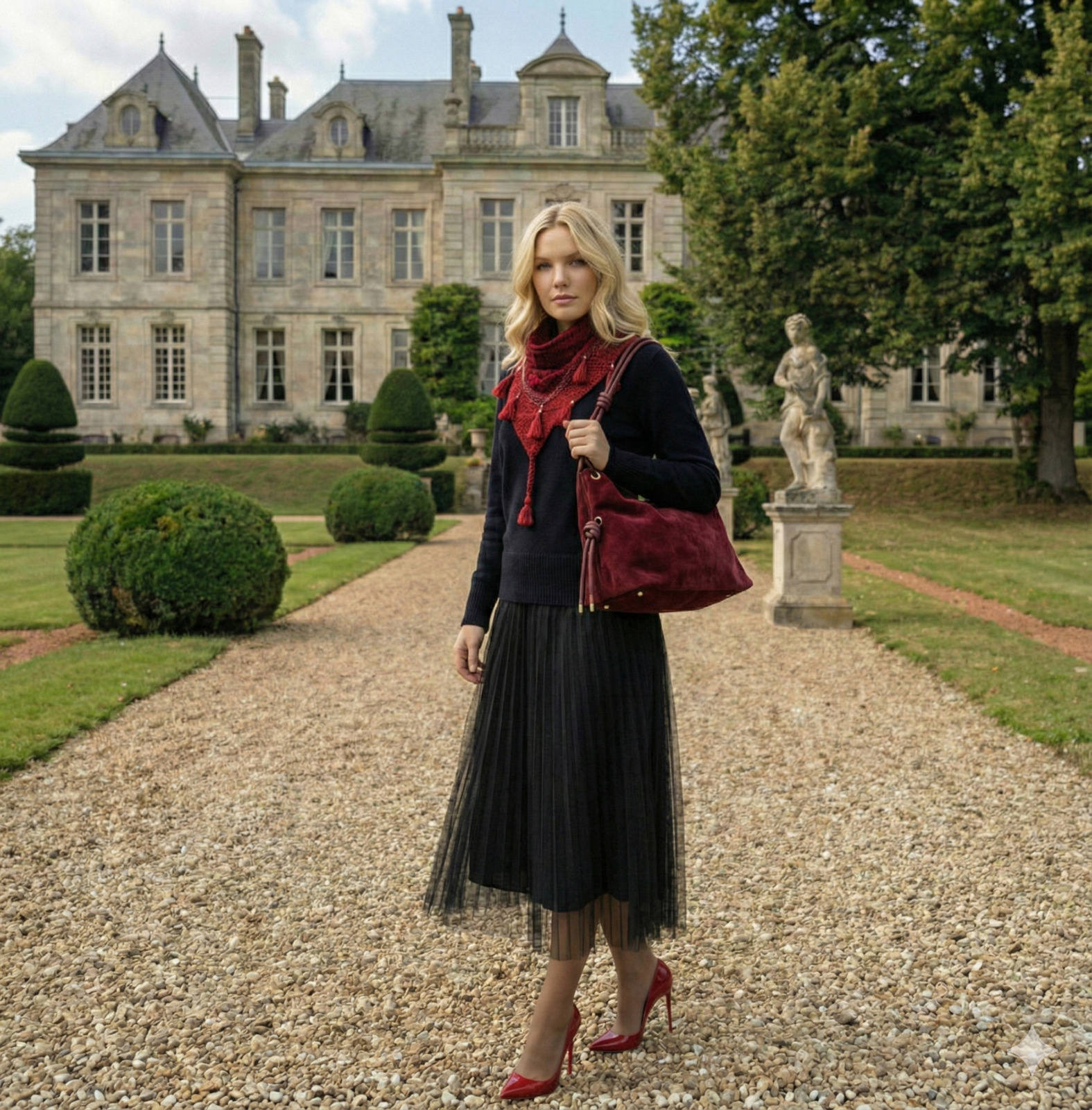 Siyah Üstü Triko Kazak Altı Askılı tül Etekli Elbise