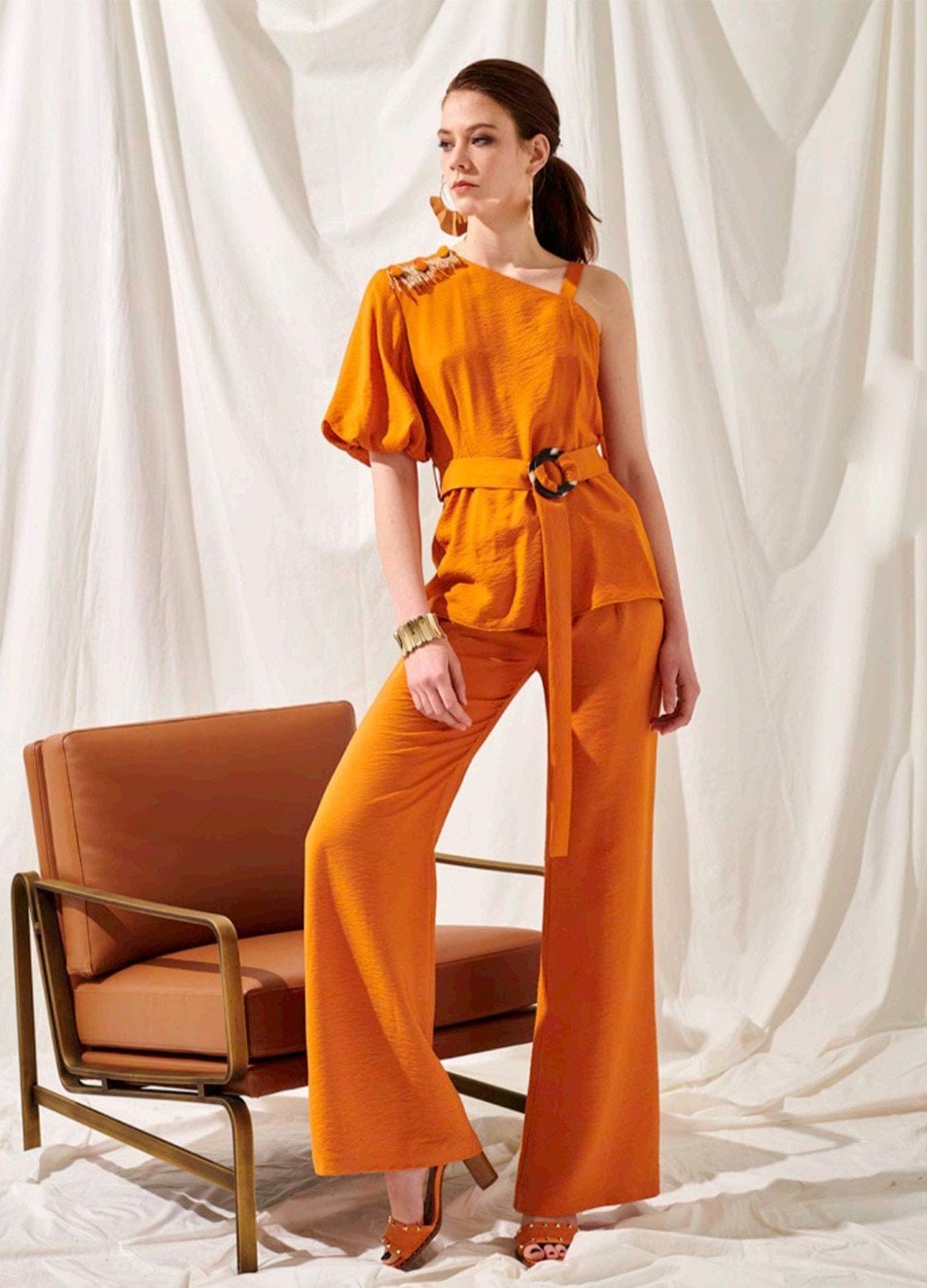 Viskon Kumaş Pileli Dökümlü Pantolon Tam Kalıptır.