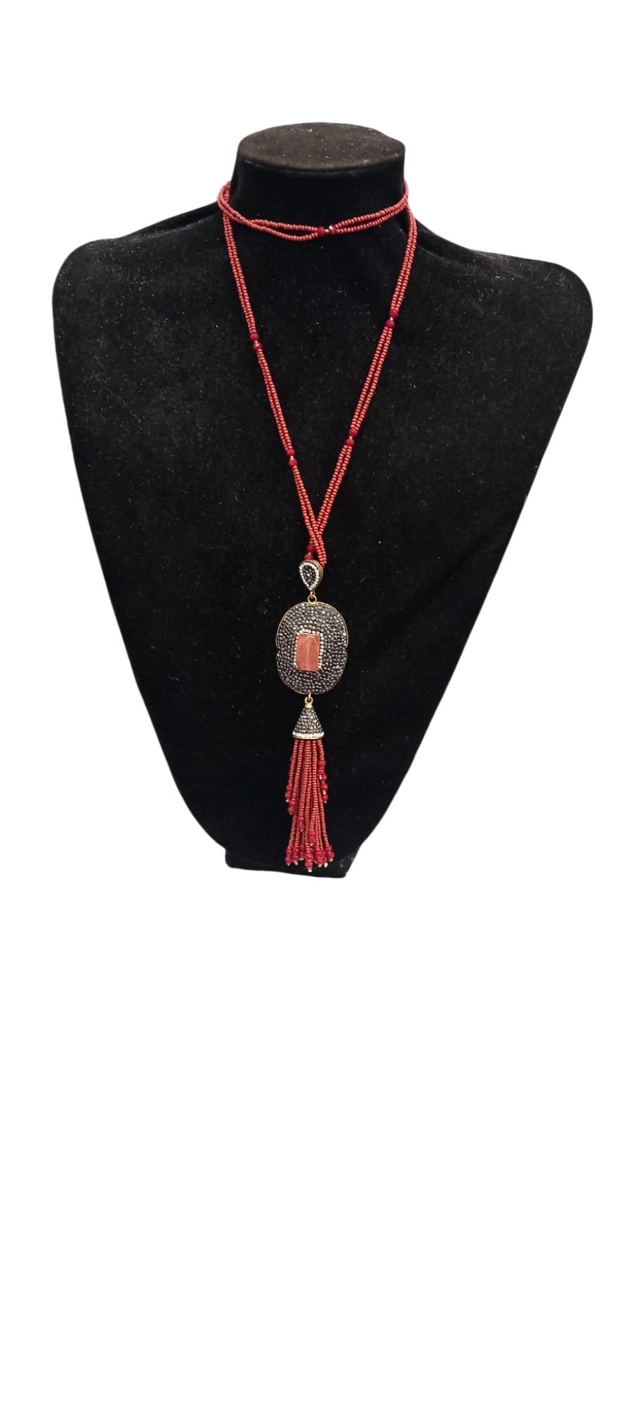 Taba Rengi Yarı Degerli Taş Markizet Taşlı Kristal Zincirli Kolye