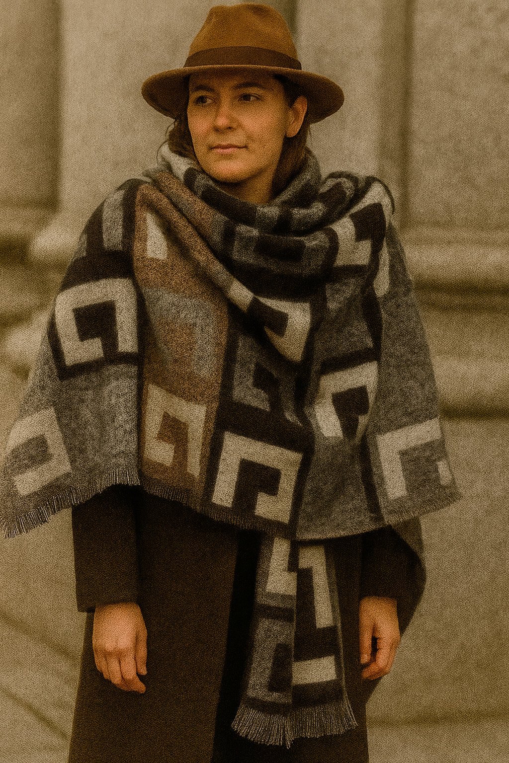 Yeşil Grili Harf Desenli Şal