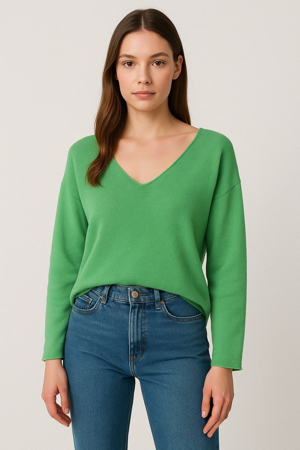 Yeşil İtalyan V Yaka Salaş Cotton Triko